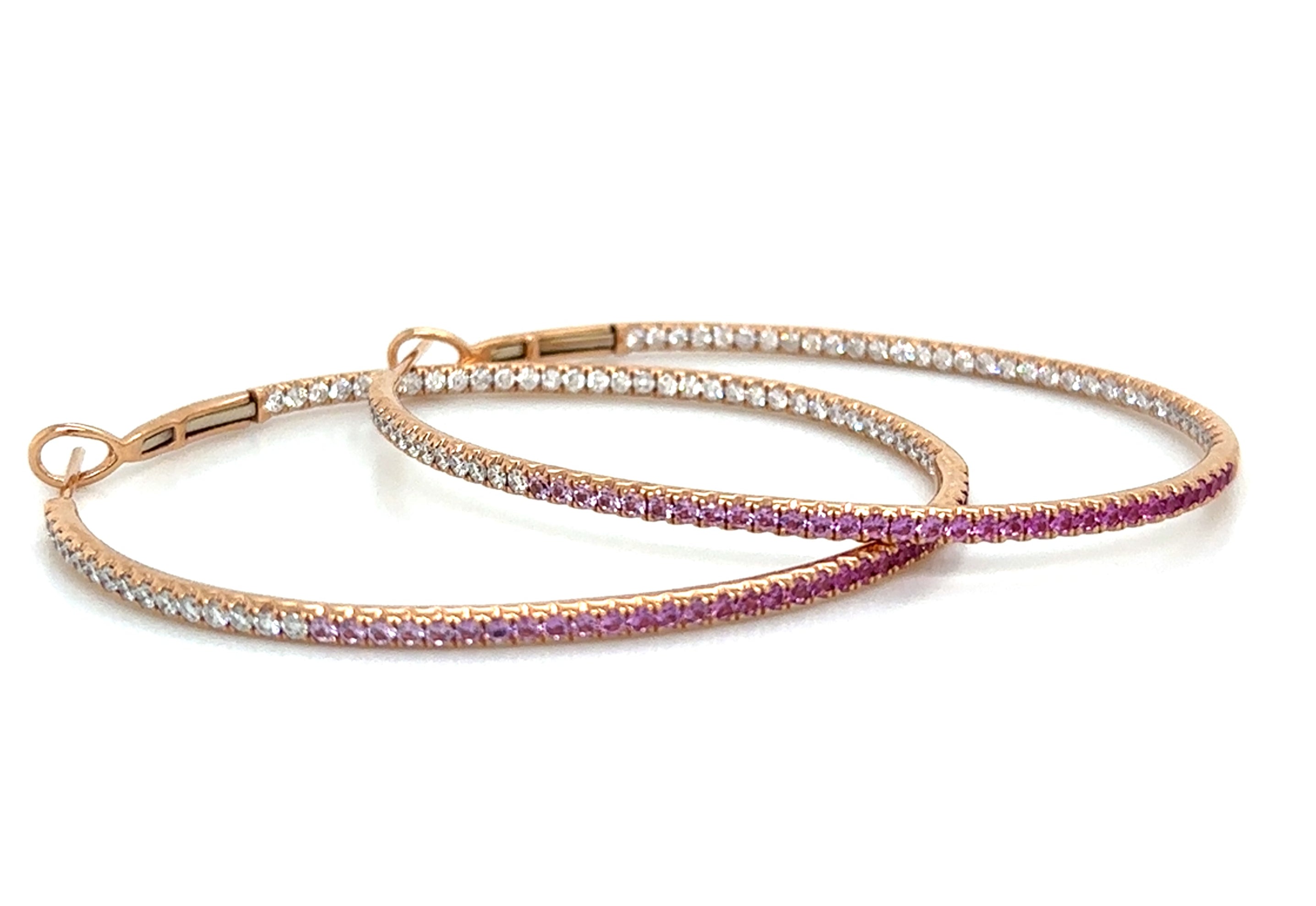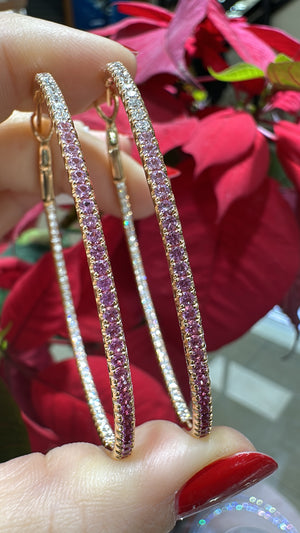 3.06ct tw Pink Sapphire & Inside-out Diamond Gold Hoop Earrings