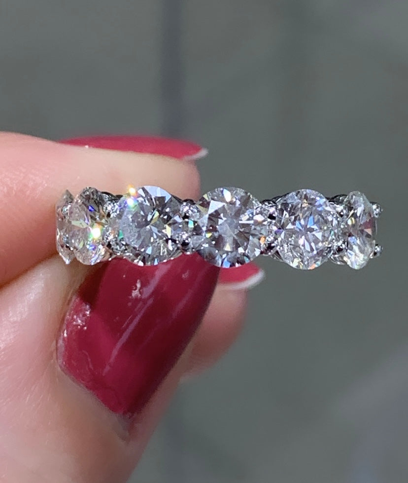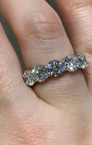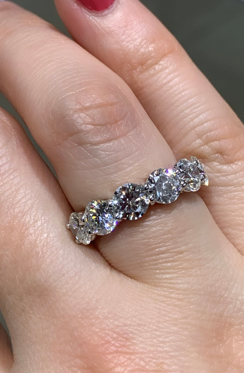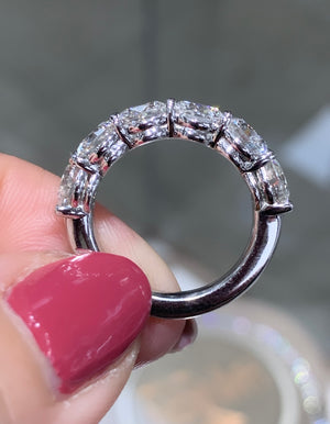 Crafted in platinum this ring with 6 round brilliant diamonds will be the one worn forever. An absolutely beautiful piece that will be passed from generation to generation. Smooth inside for comfortable wear with diamonds matched to perfection.