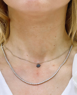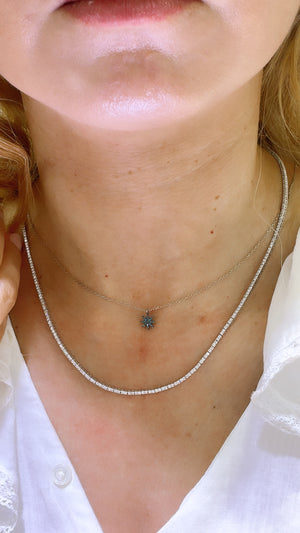 Elevate your look with our stunning 3.17ct tw Lab Diamond Riviera Line Tennis Necklace. Featuring lab-grown diamonds, this statement piece adds a touch of sophistication and luxury to any outfit. The timeless design and intricate craftsmanship make it the perfect accessory for any occasion.