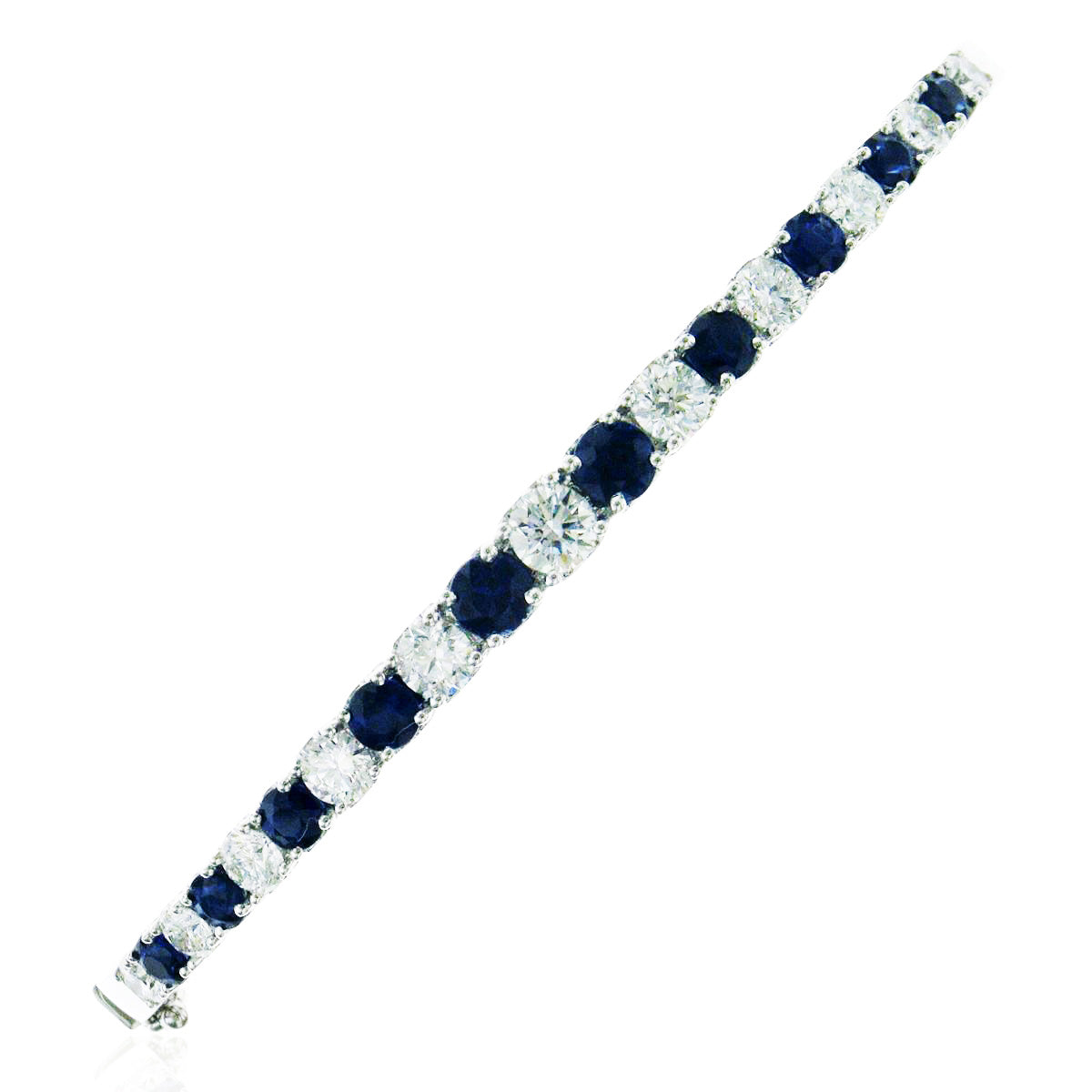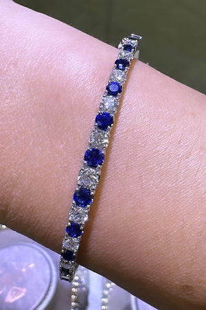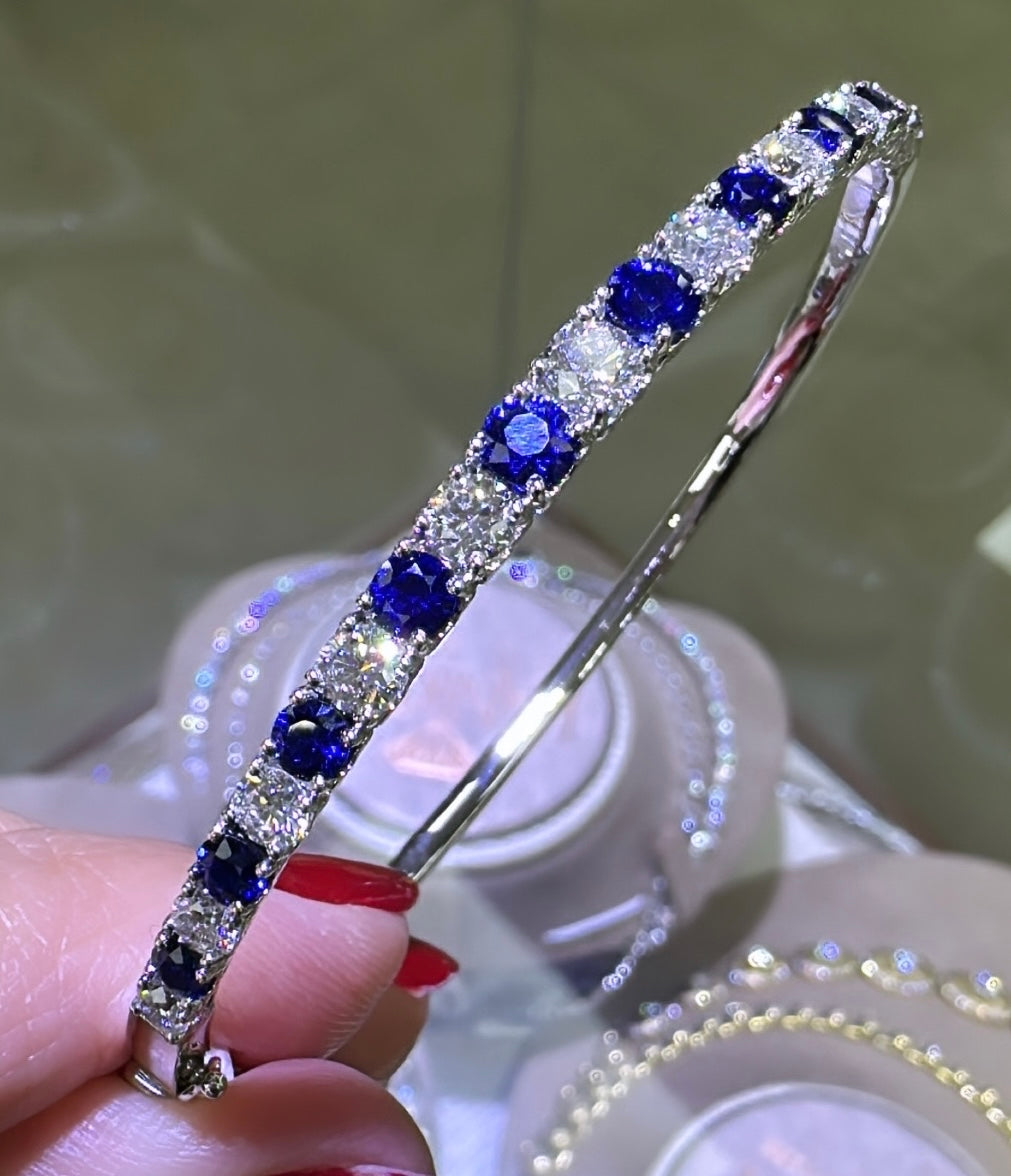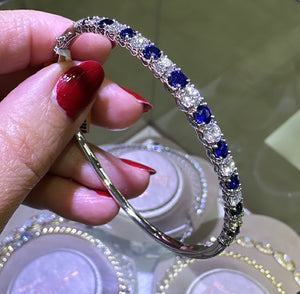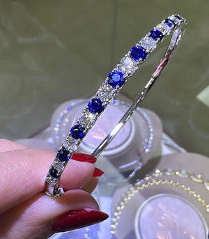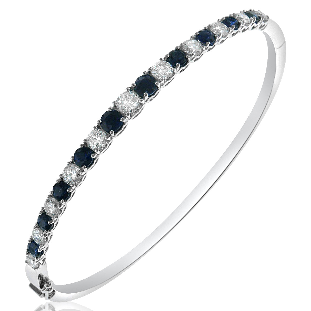 What's better than a white gold bangle? Diamond & Sapphire gold bangle of course! You'll adore the sparkling diamond stones that enrich this bangle with brilliance. You can wear this fabulous bangle with absolutely anything.