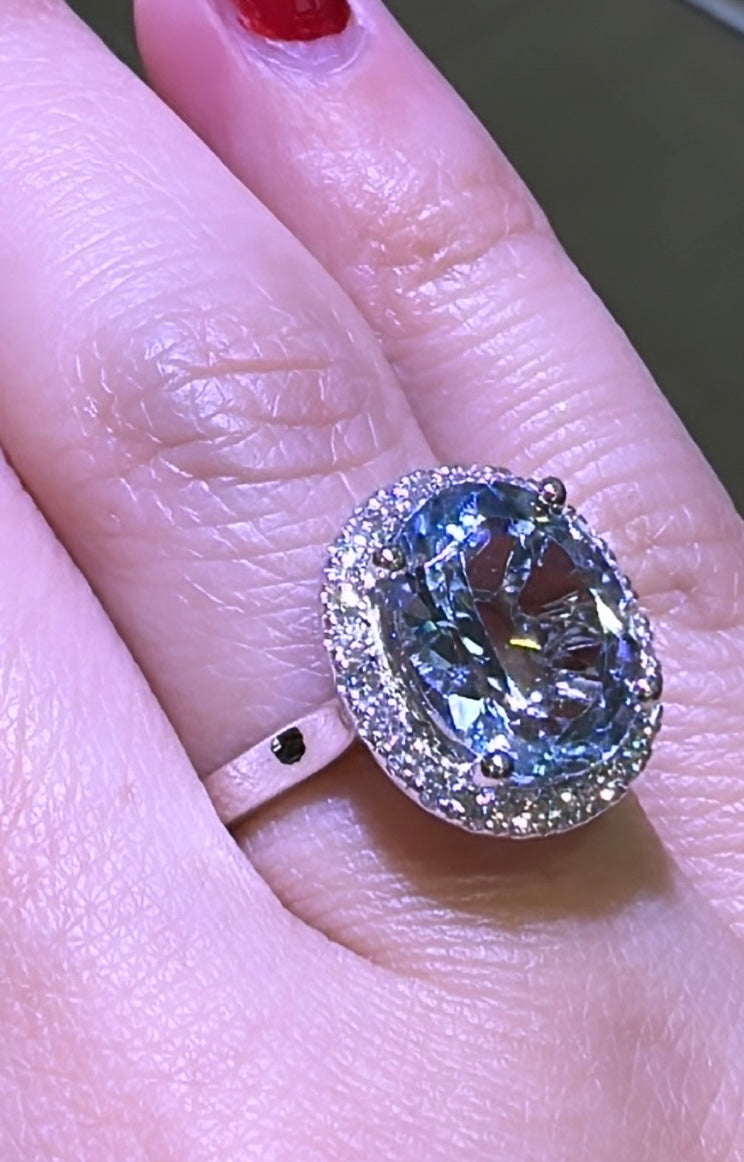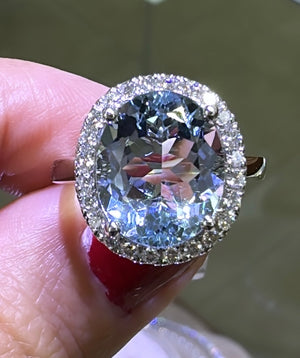 Oval cut Aquamarine & Diamond Ring