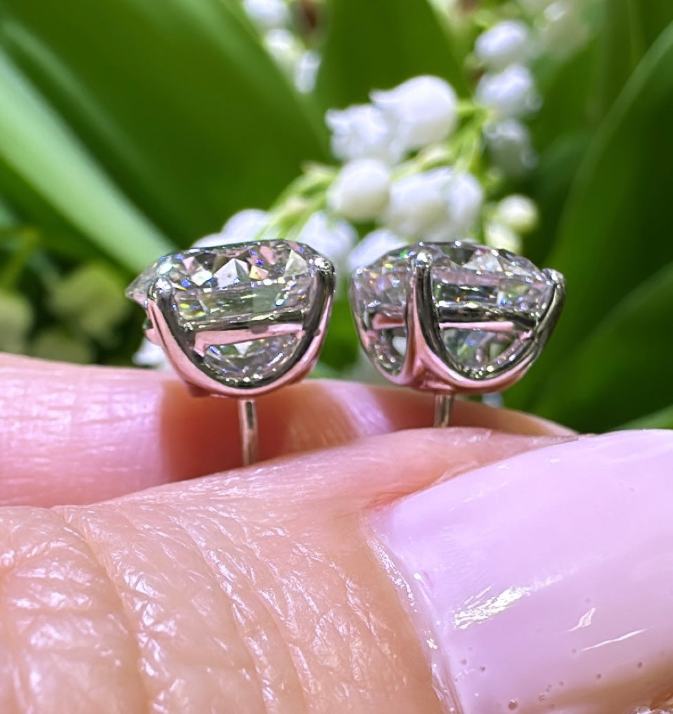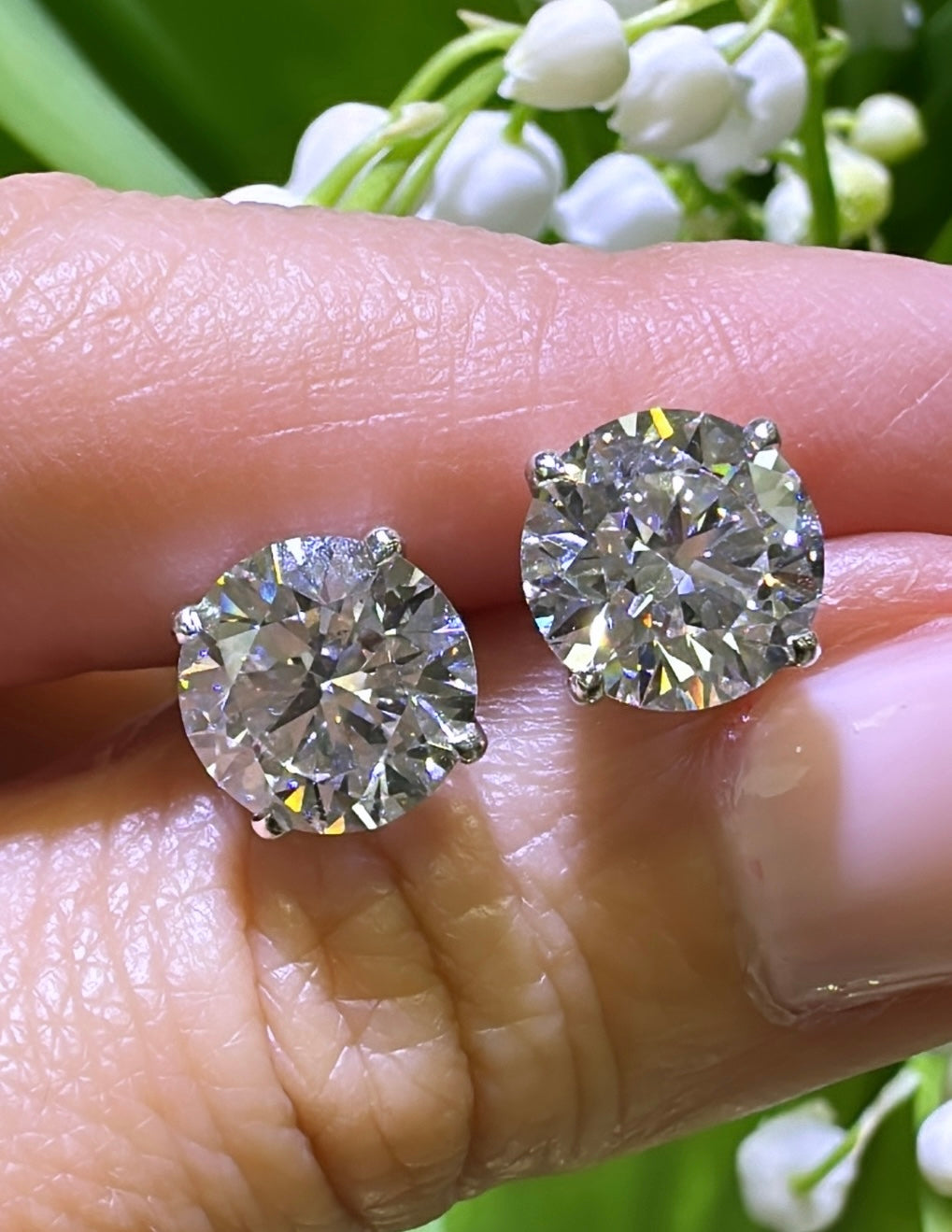 Celebrate your timeless style with these exquisite earrings, featuring 4.69carat of enchanting round brilliant-cut diamonds set in white gold. Their classic sophistication and one-of-a-kind beauty make them an ideal accessory for any occasion, allowing you to shimmer and shine with distinctive, effortless elegance.