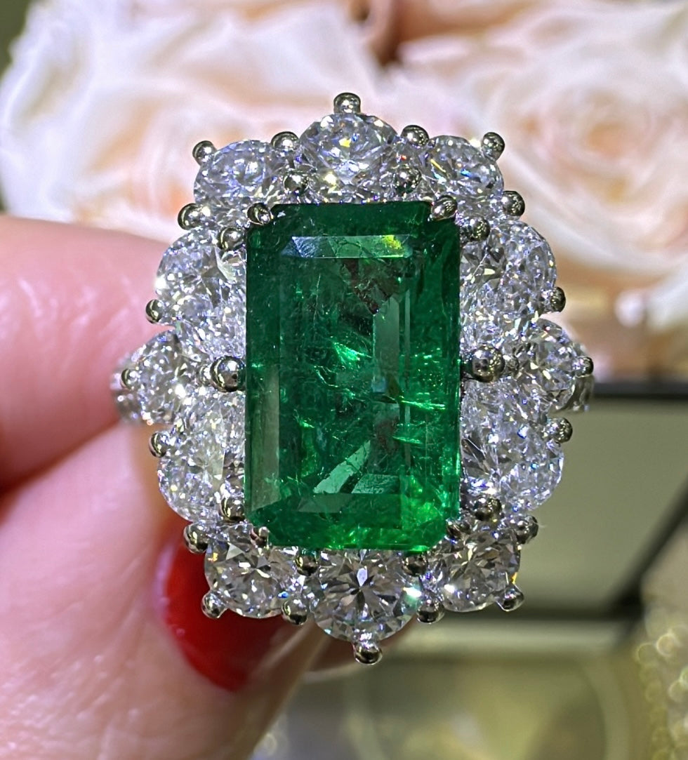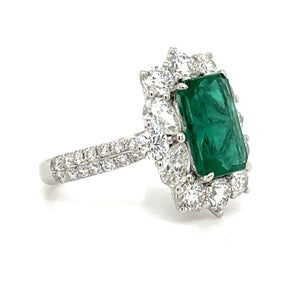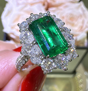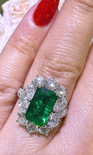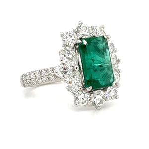 Unleash the vibrant beauty of this 5.12carat emerald and diamond statement ring! With its stunning emerald center stone and sparkling diamond accents, this ring exudes elegance and sophistication. Make a bold statement and add a touch of luxury to any outfit. Perfect for any special occasion or as an exquisite gift for your loved one!
