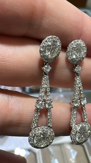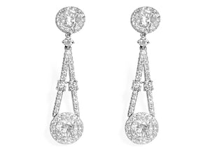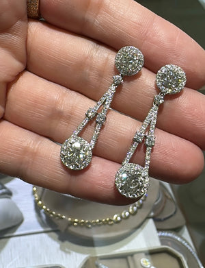 Love art-deco inspired jewelry earrings? Then these gorgeous 5.24ctw diamond earrings are a must-have for your jewelry box. They are beautifully faceted and will glimmer with every move that you make. Metal: 18K White Gold Diamond Shape: Round center 3.21ctw Pave Diamond Weight: 2.03ctw Total Round Diamonds Weight: 5.24ctw Setting: Prong, Pave Backing: Push Backs
