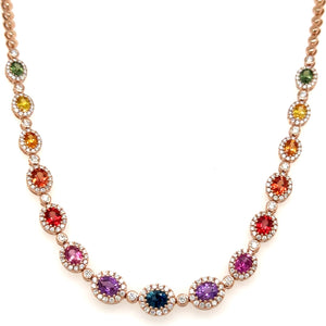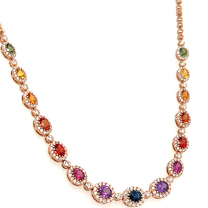 5.74ct tw Oval-cut Rainbow Sapphire and Diamond Gem Stone Tennis Necklace