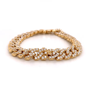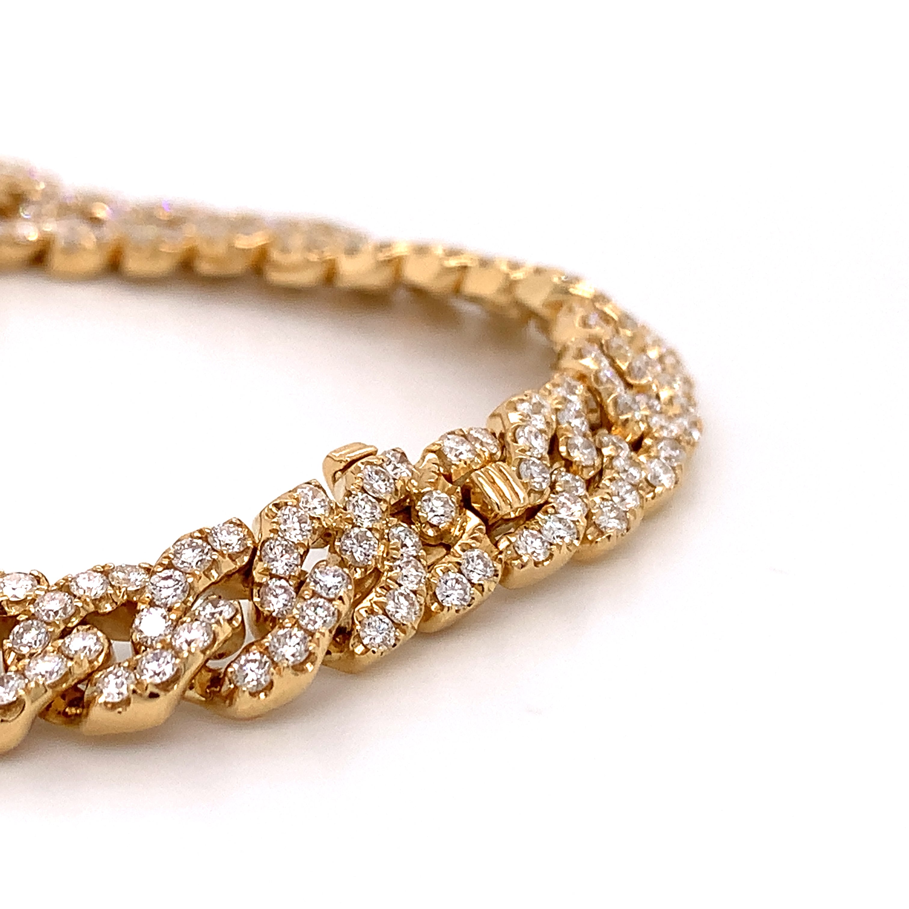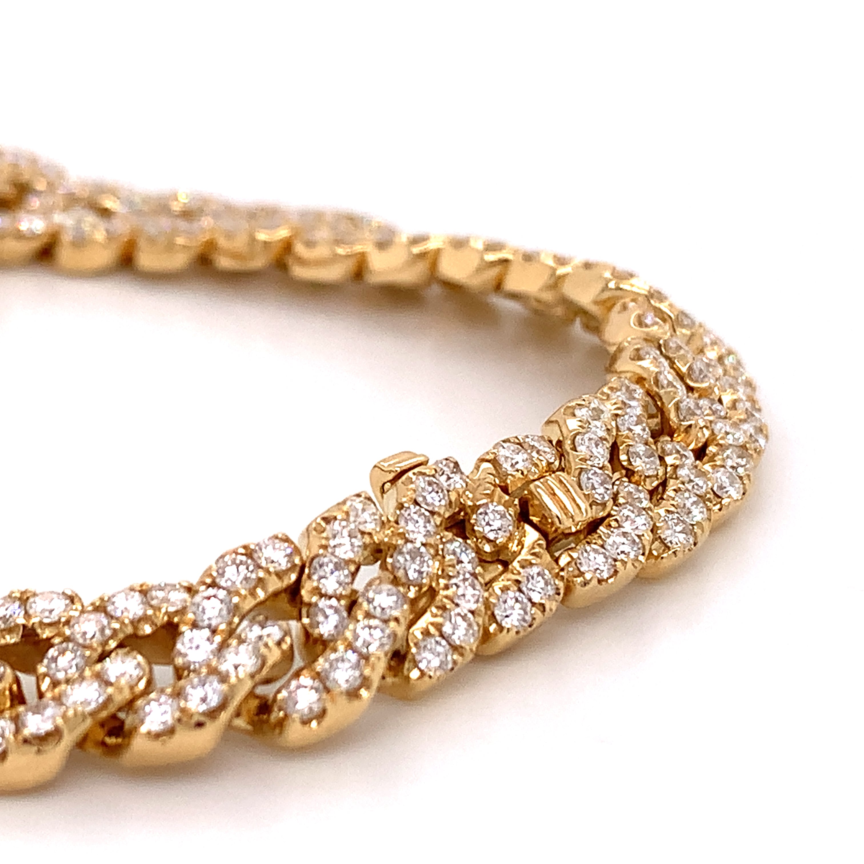 The yellow gold color makes it very sexy and unique. Slip this link chain bracelet on to accent anything from sleek and professional work looks, to black tie ensembles. Metal: 18K Yellow gold Diamond Weight: 5.79ct t.w. Diamond Shape: 261 Round Brilliant Cuts Lenght: 7"