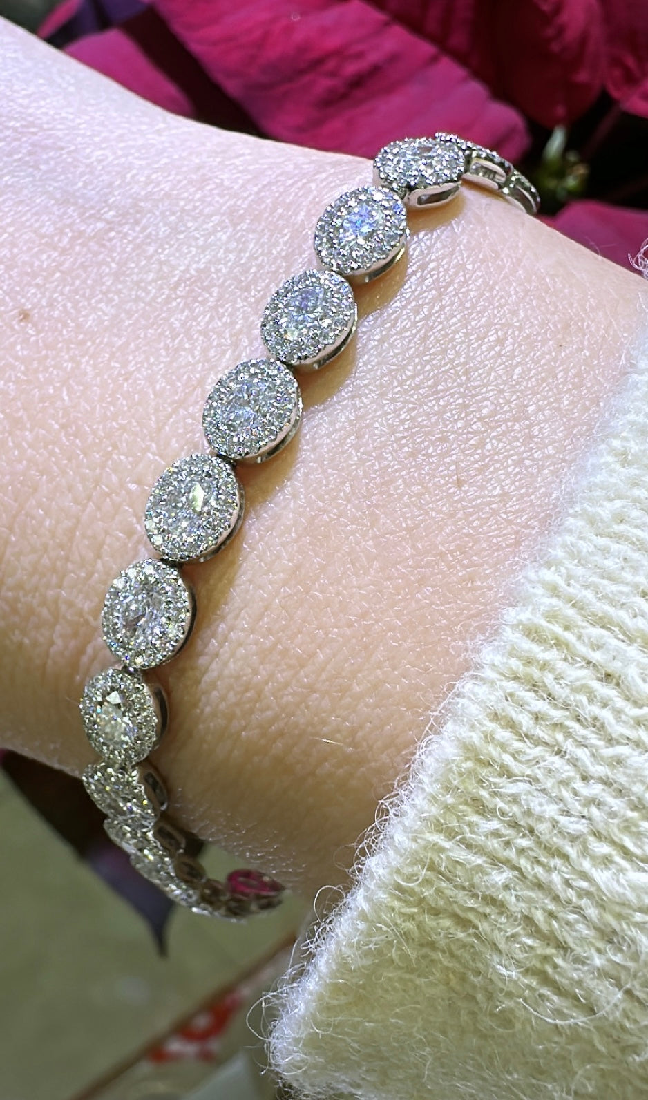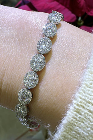 Elevate your style with our stunning 6.20ct t.w. lab diamond Oval-shape statement bracelet. Crafted with lab grown diamonds, this breathtaking piece will add a touch of elegance and sparkle to any outfit. Make a statement and feel confident with this exquisite bracelet on your wrist.