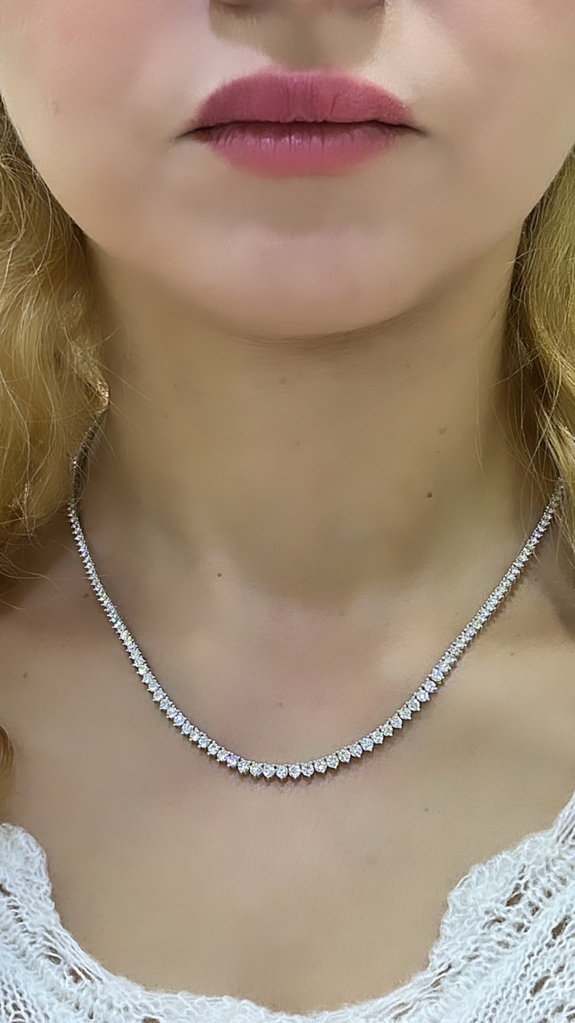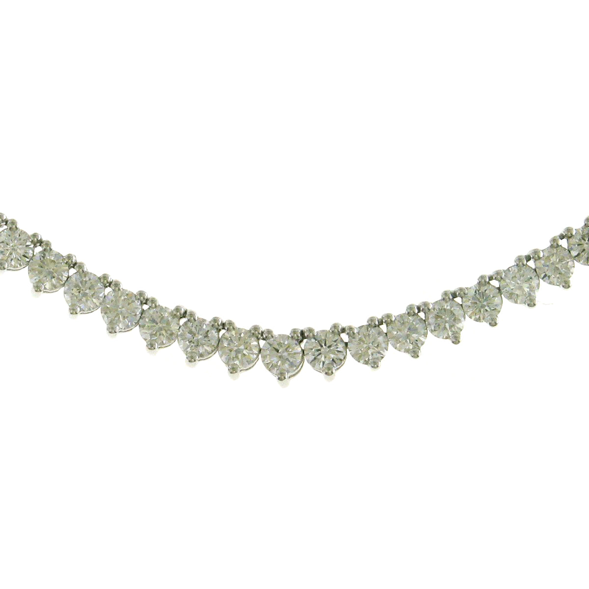 Diamond riviera line tennis gradual statement necklace is a timeless piece for remarkable sophistication. It features 6.63carats of diamonds, creating a dazzling array of sparkling lights. The necklace is crafted with fine quality craftsmanship, making it an ideal luxury to show off your style.