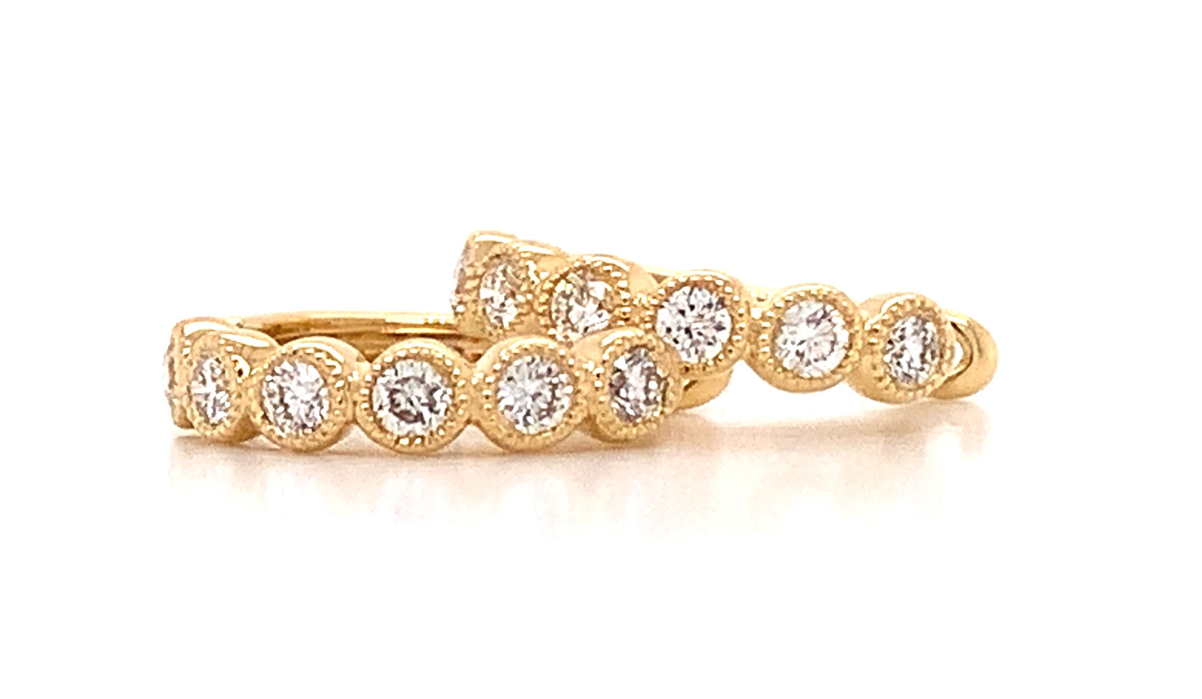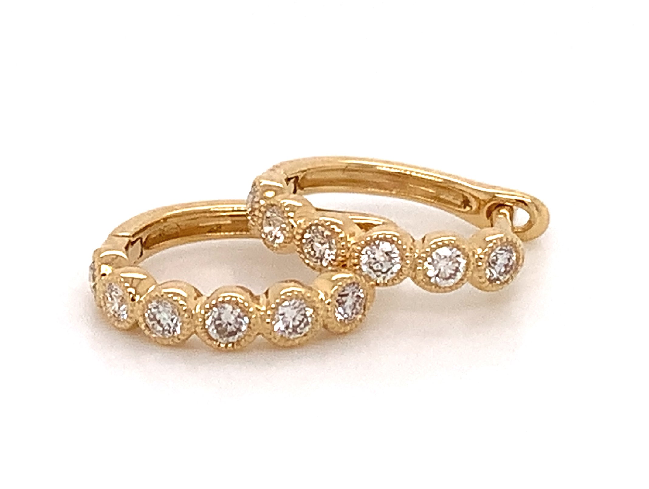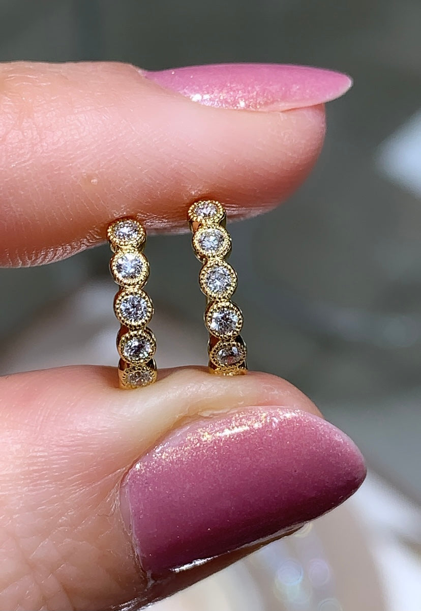 Fabulous petite diamond hoop earrings are inlaid with a total of 0.23carats diamonds. They are fashion-forward but wonderful for any special occasion that you might have coming up.
