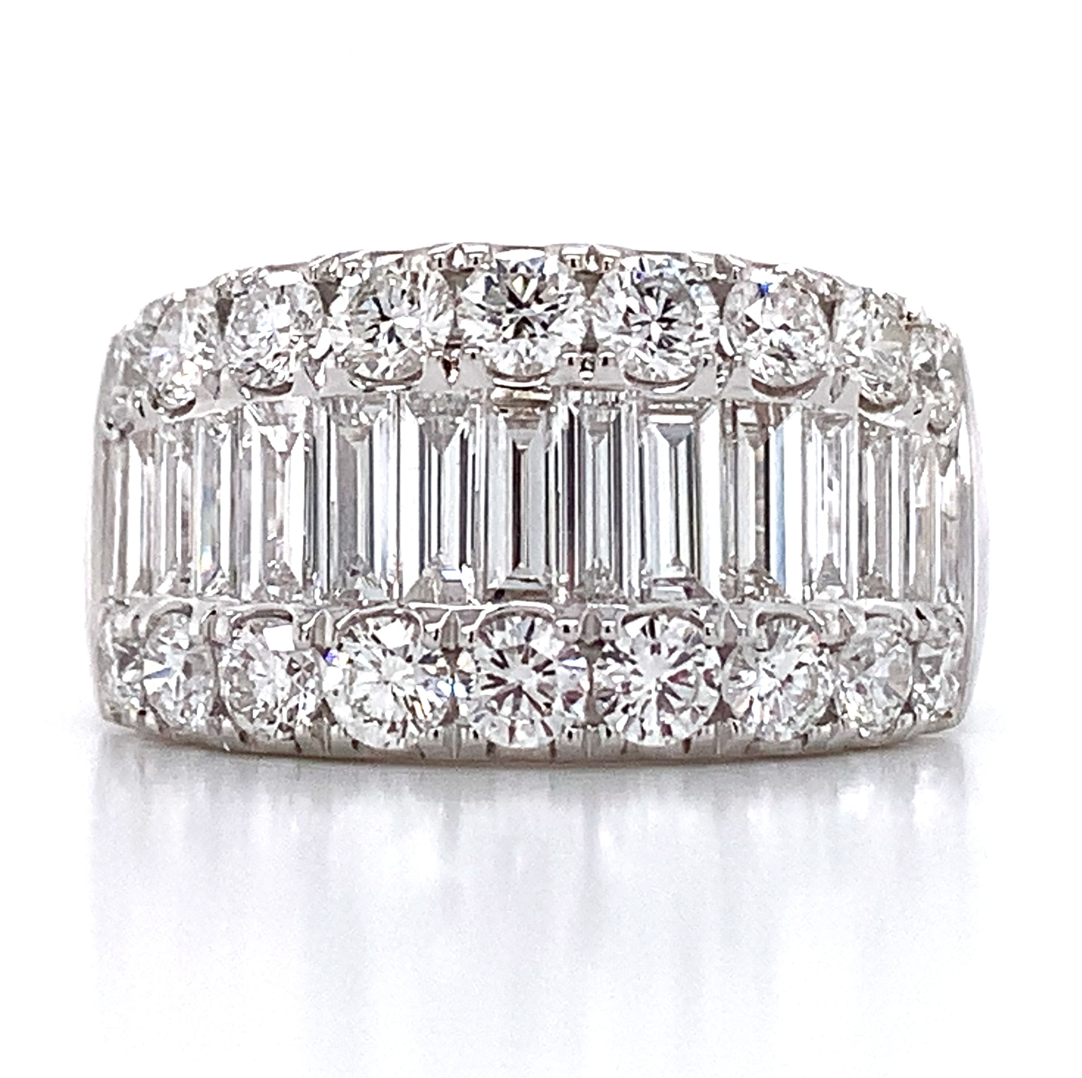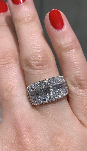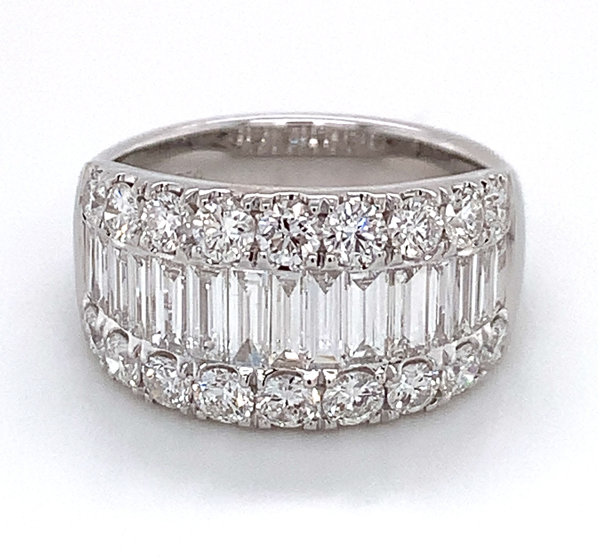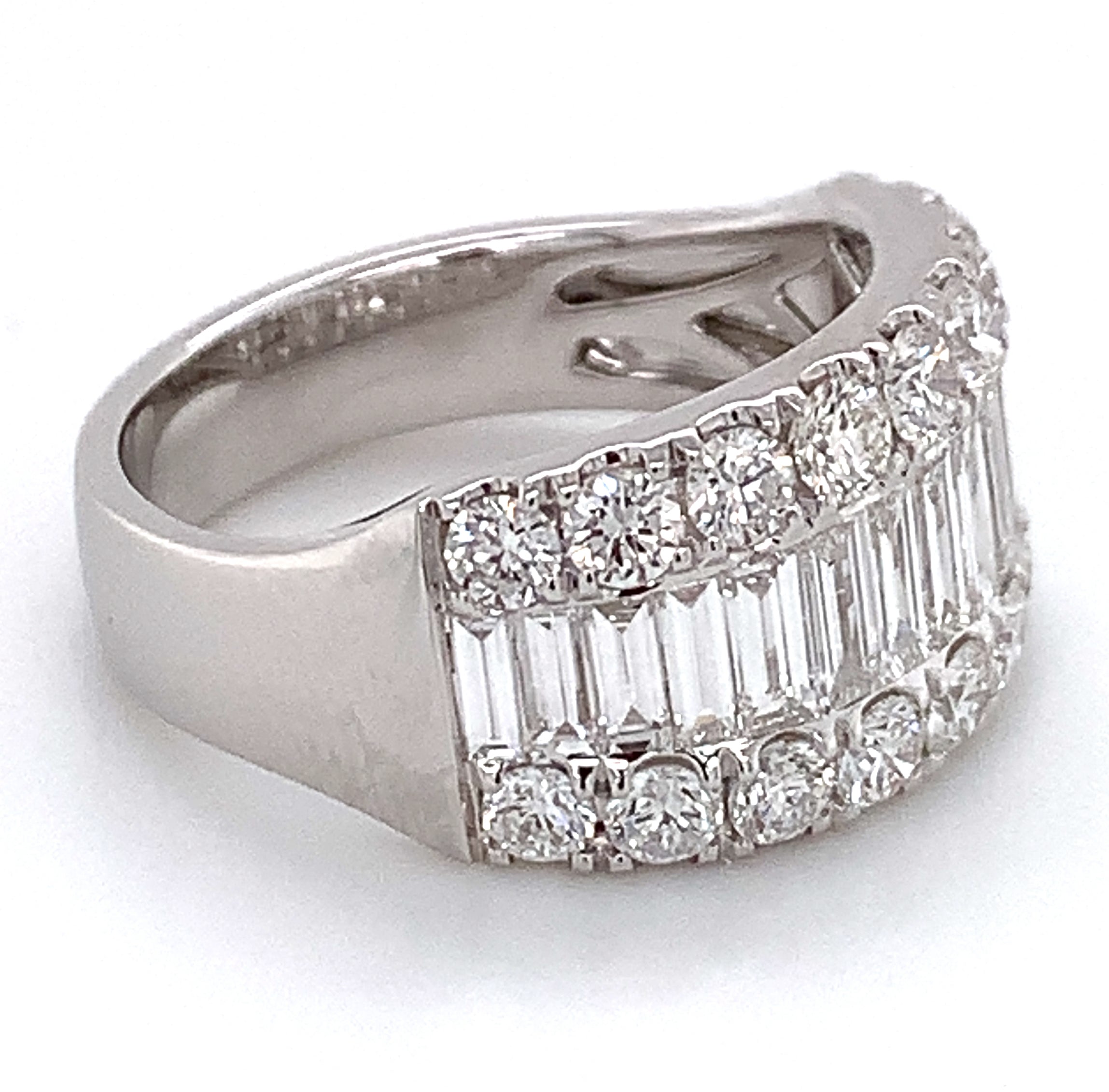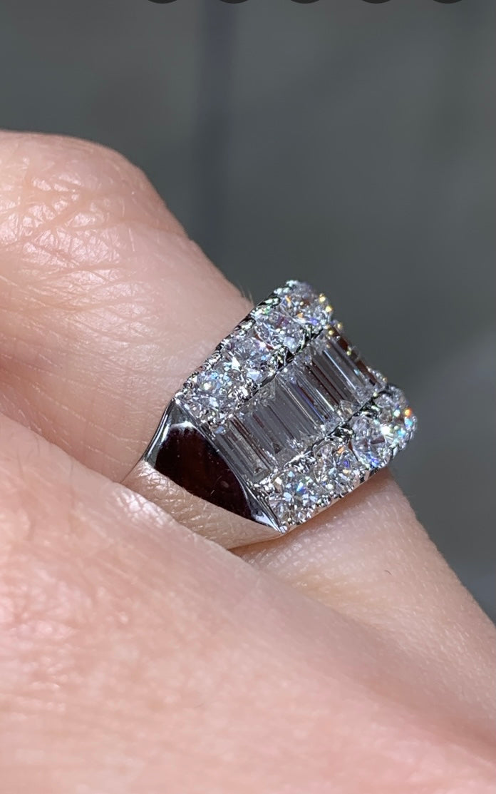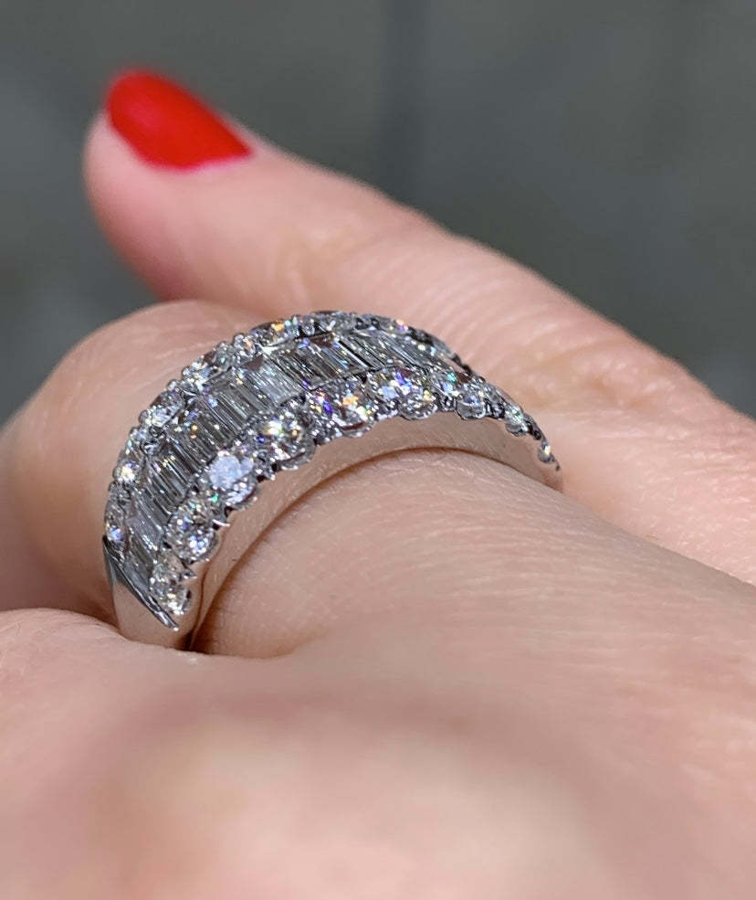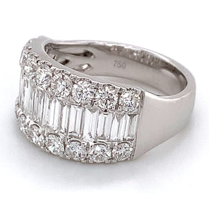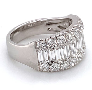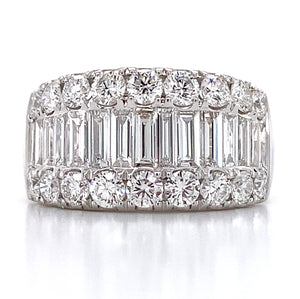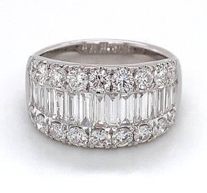 Looking for an anniversary band that has a fashionista in mind, but that manages to be classy at the same time? Then we think that we have the perfect diamond ring for you. This 2.29ct t.w. baguette and round diamond ring combine round and baguette-shaped stones. Its classic style adds lots of sparkle to any girl's finger. And what is great is that you can wear this as an anniversary ring, or simply as a fabulous accessory.