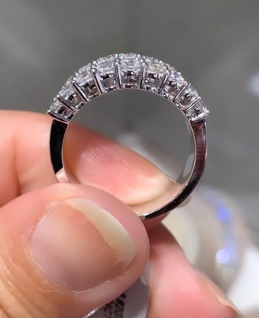 Looking for an anniversary band that has a fashionista in mind, but that manages to be classy at the same time? Then we think that we have the perfect diamond ring for you. This 2.68ct t.w. baguette and round diamond ring combine round and baguette-shaped stones. Its classic style adds lots of sparkle to any girl's finger. And what is great is that you can wear this as an anniversary ring, or simply as a fabulous accessory.