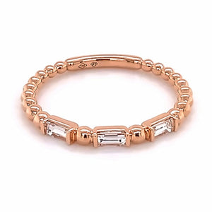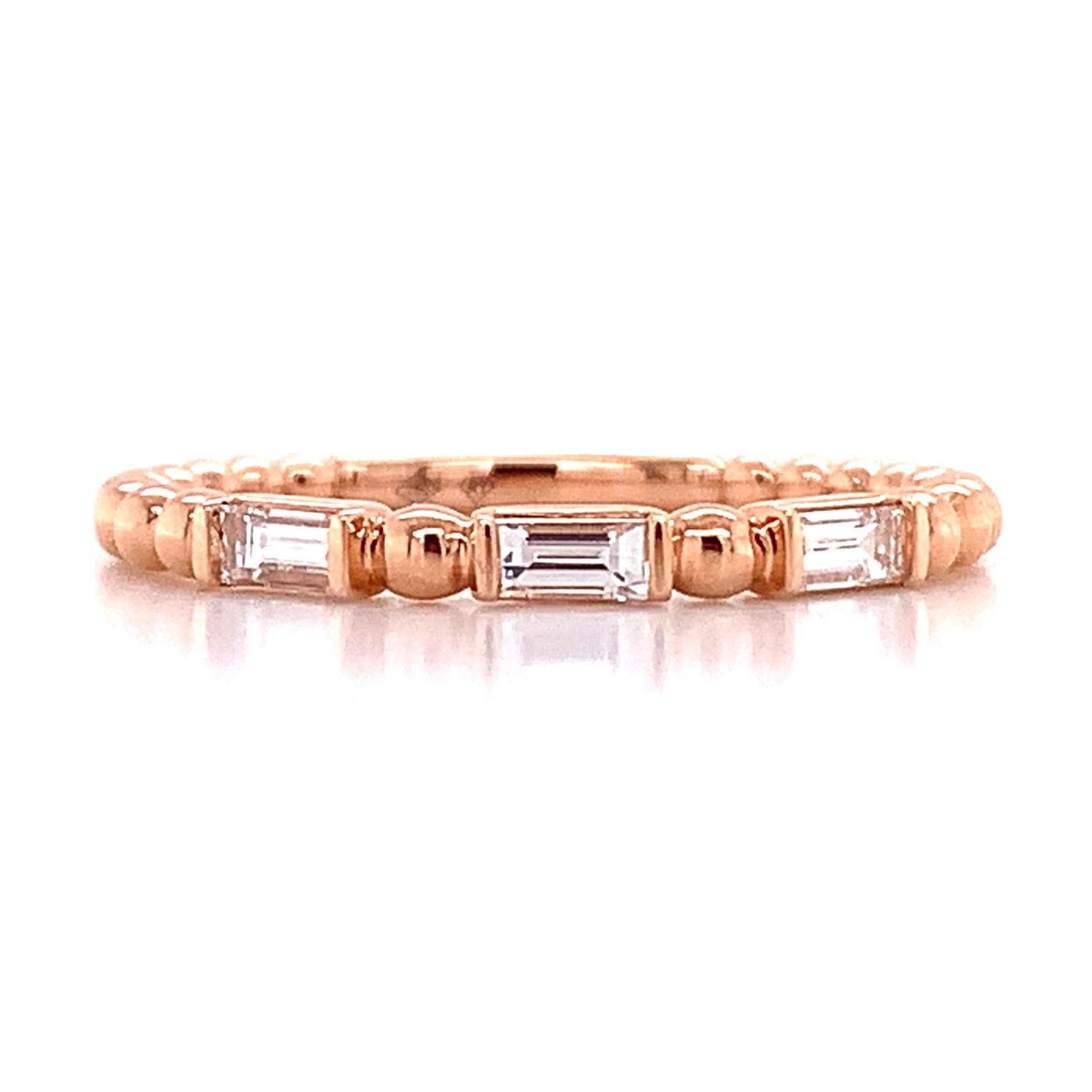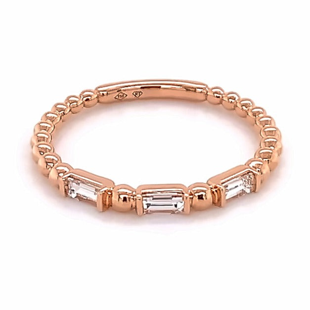 Beaded Gold And Emerald-cut Horizontally Set Diamond Ring