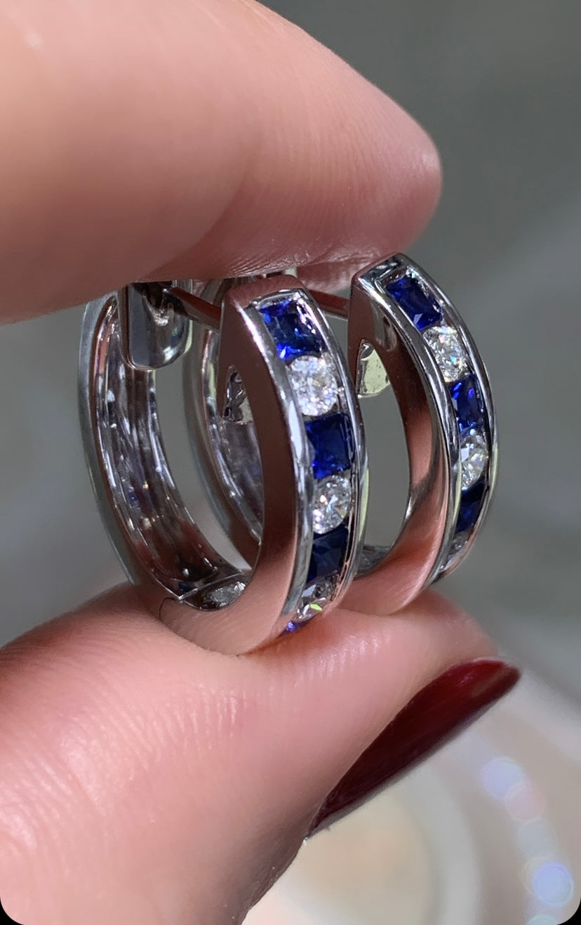 Timeless sophistication and extraordinary color are captured in these blue sapphire and diamond earrings.