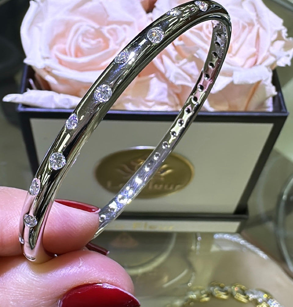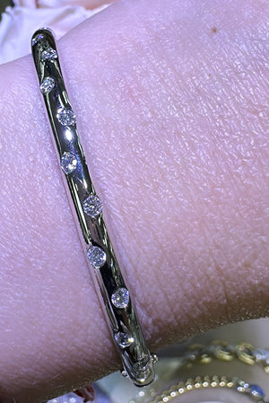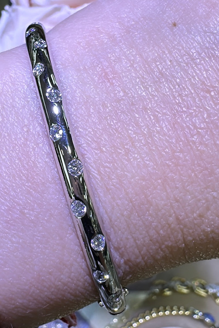 This best-selling style boasts a polished gold finished inlaid with 11 sparkling round-cut diamonds. An instant classic that will become your signature. Wear with the coordinating huggies or ring.