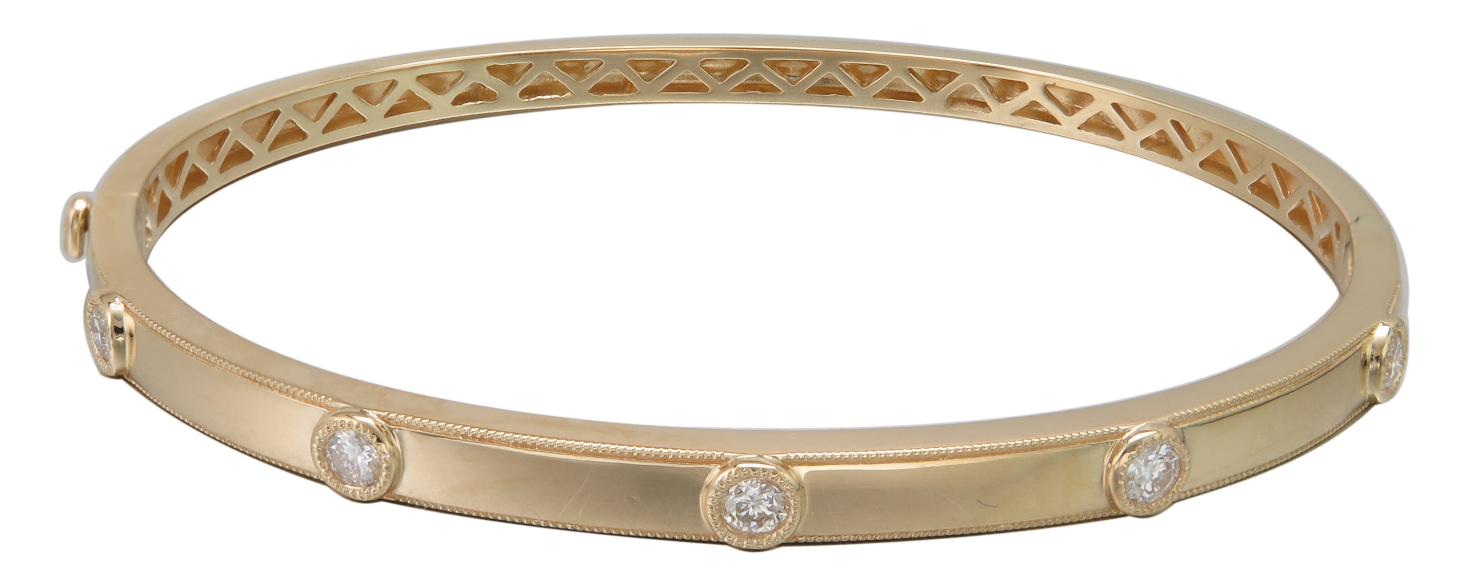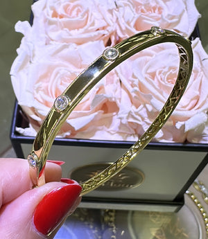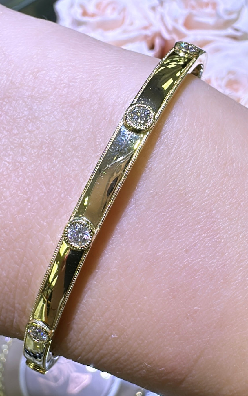This best-selling style boasts a polished gold finished inlaid with 5 sparkling round-cut diamonds. An instant classic that will become your signature.