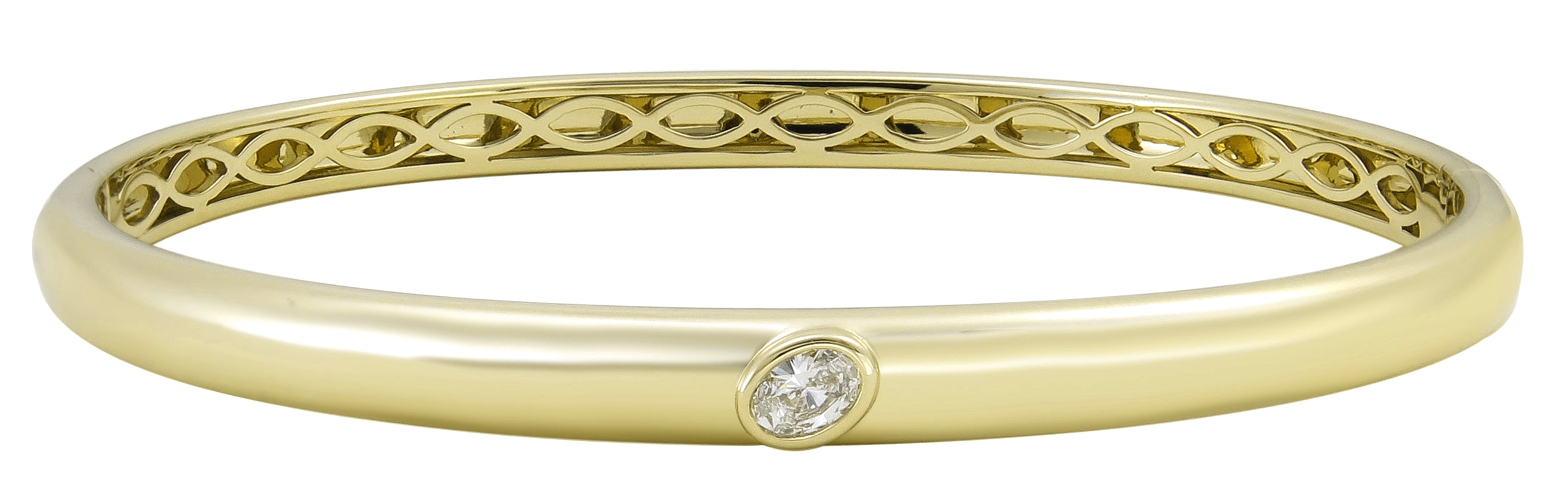 This best-selling style boasts a polished gold finished inlaid with 1 center sparkling Oval-cut diamond. An instant classic that will become your signature.