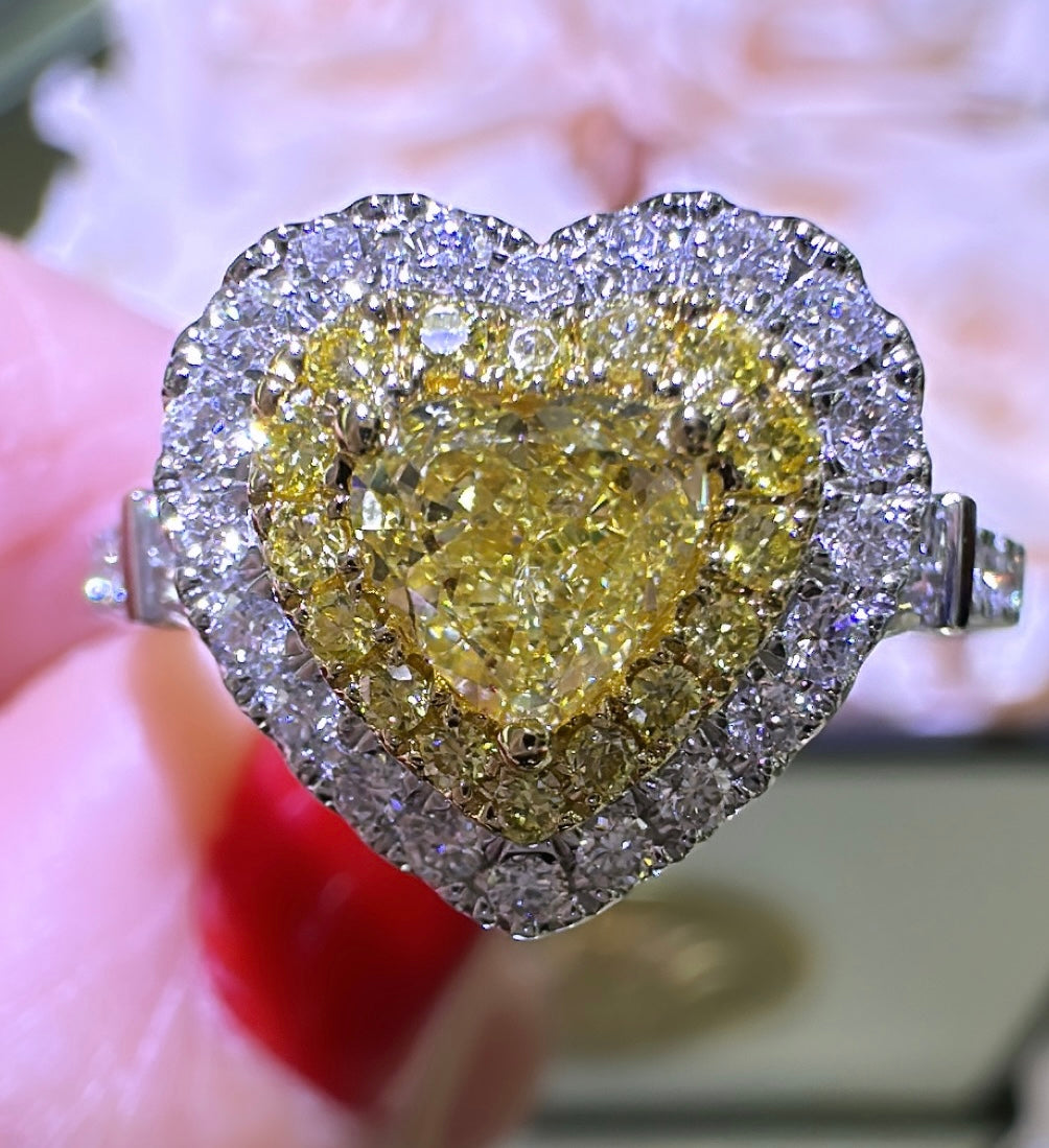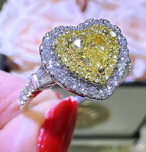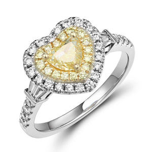 Canary Fancy Vivid Yellow Heart Shape Cut 0.96ct t.w. Halo Ring