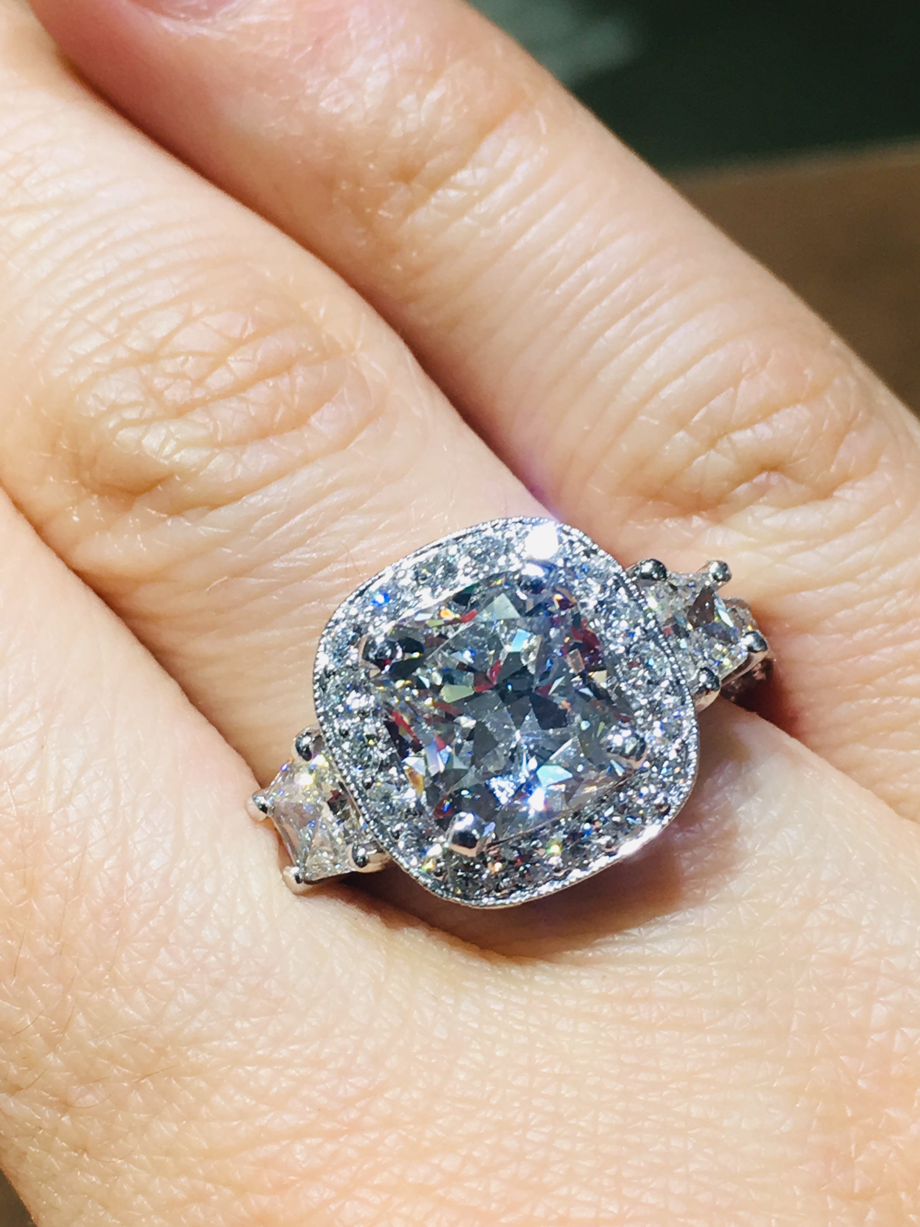 Center Diamond: Cushion Cut - 3.02ct H-VS2 (GIA)