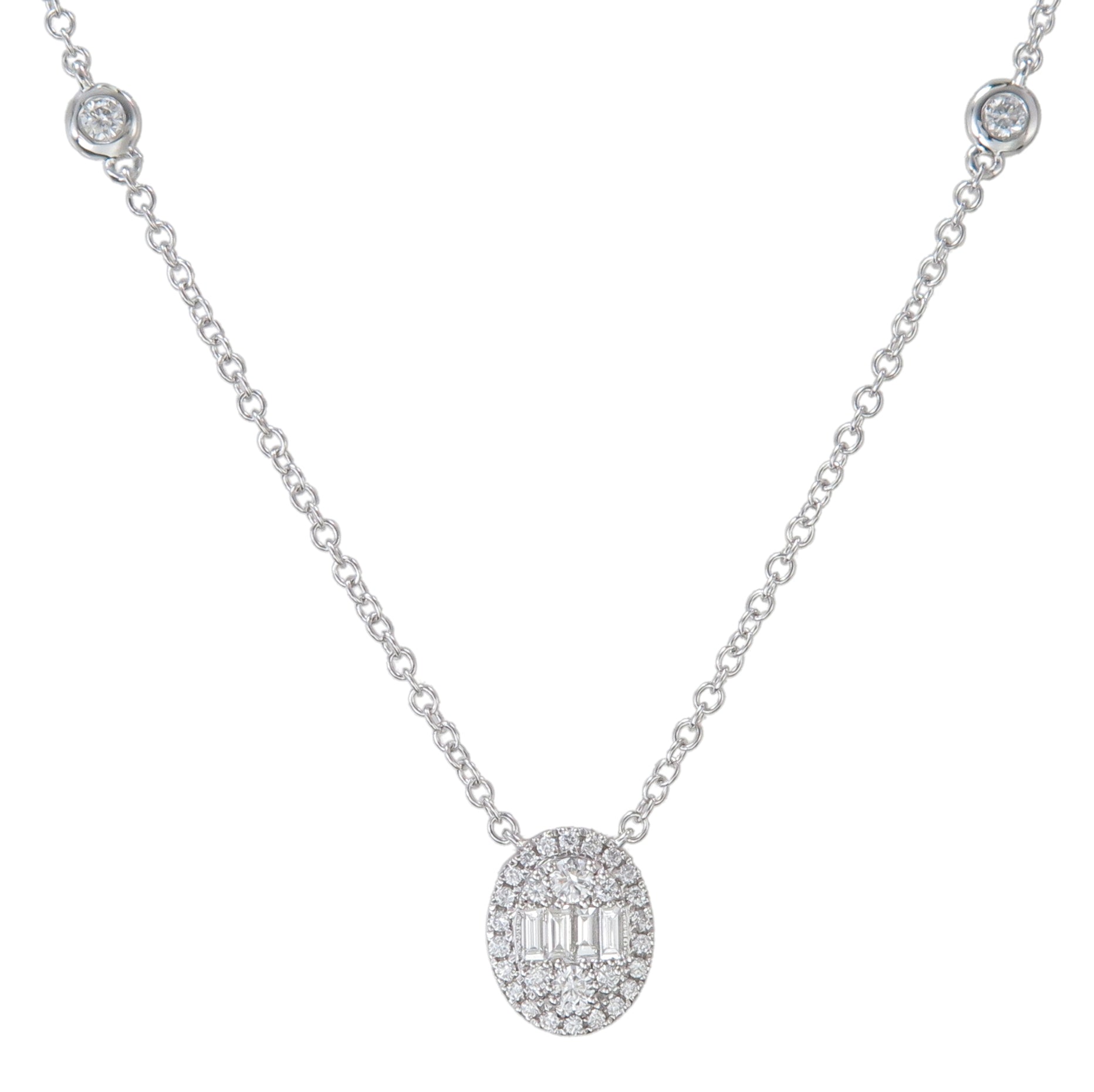 Elevate your style with our dazzling diamond 0.37ct tw halo cluster oval pendant necklace! This elegant piece features a sparkling 0.37ct diamond surrounded by a halo of smaller diamonds, creating a stunning cluster effect. Perfect for special occasions or everyday wear.