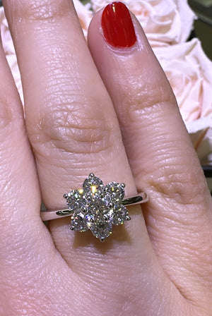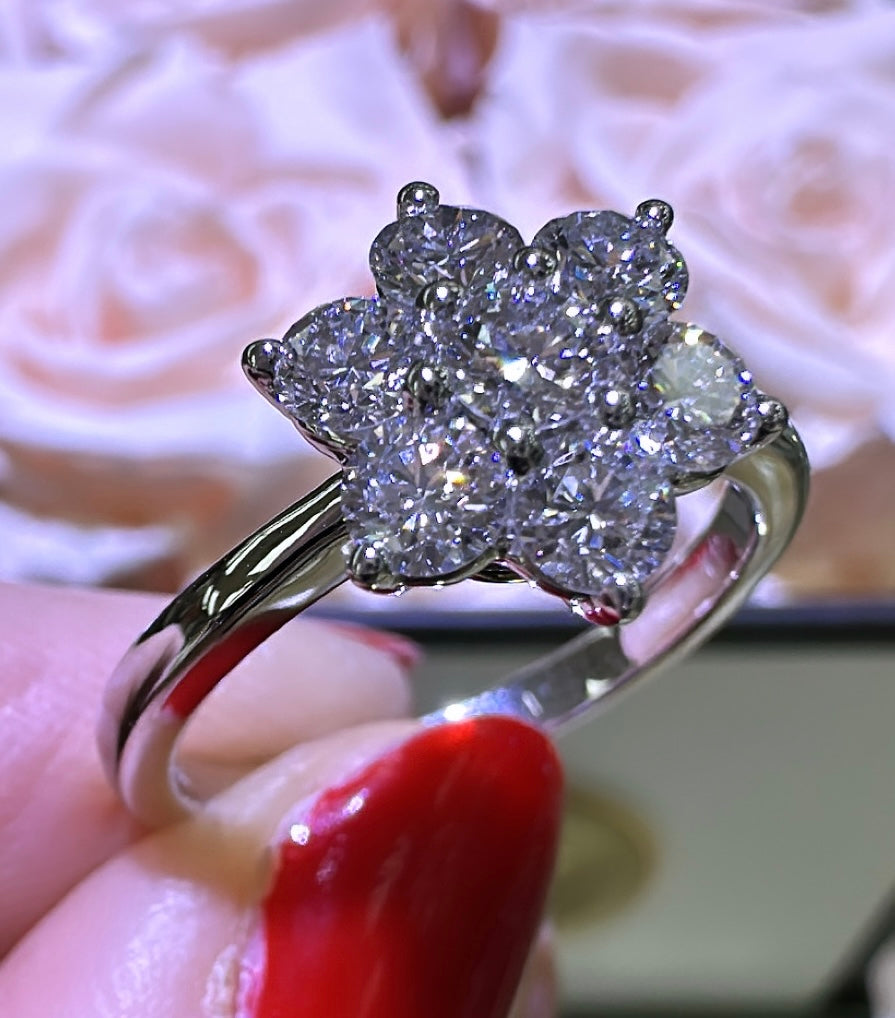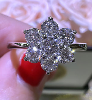 Make a statement with our stunning Diamond 1.01ct t.w. cluster flower shape ring! This elegant ring features a beautiful cluster of diamonds shaped like a flower, totaling 1.01ct. Add a touch of luxury to any outfit and shine bright with this breathtaking piece.