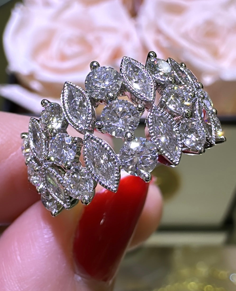 Diamond Shape: 15 Round-cuts 1.33ct tw , Princess 8 Marquise 0.59ct tw