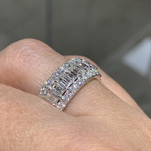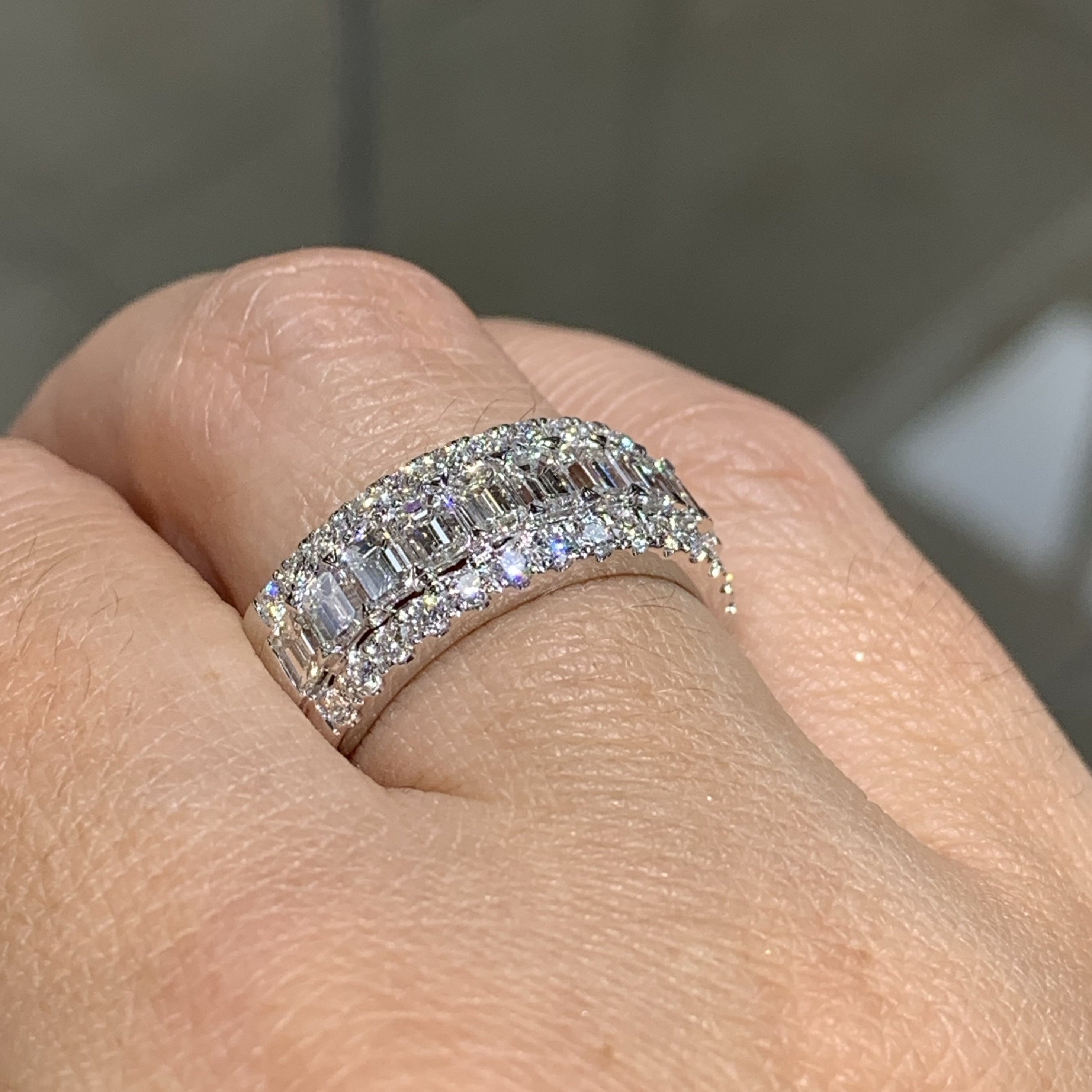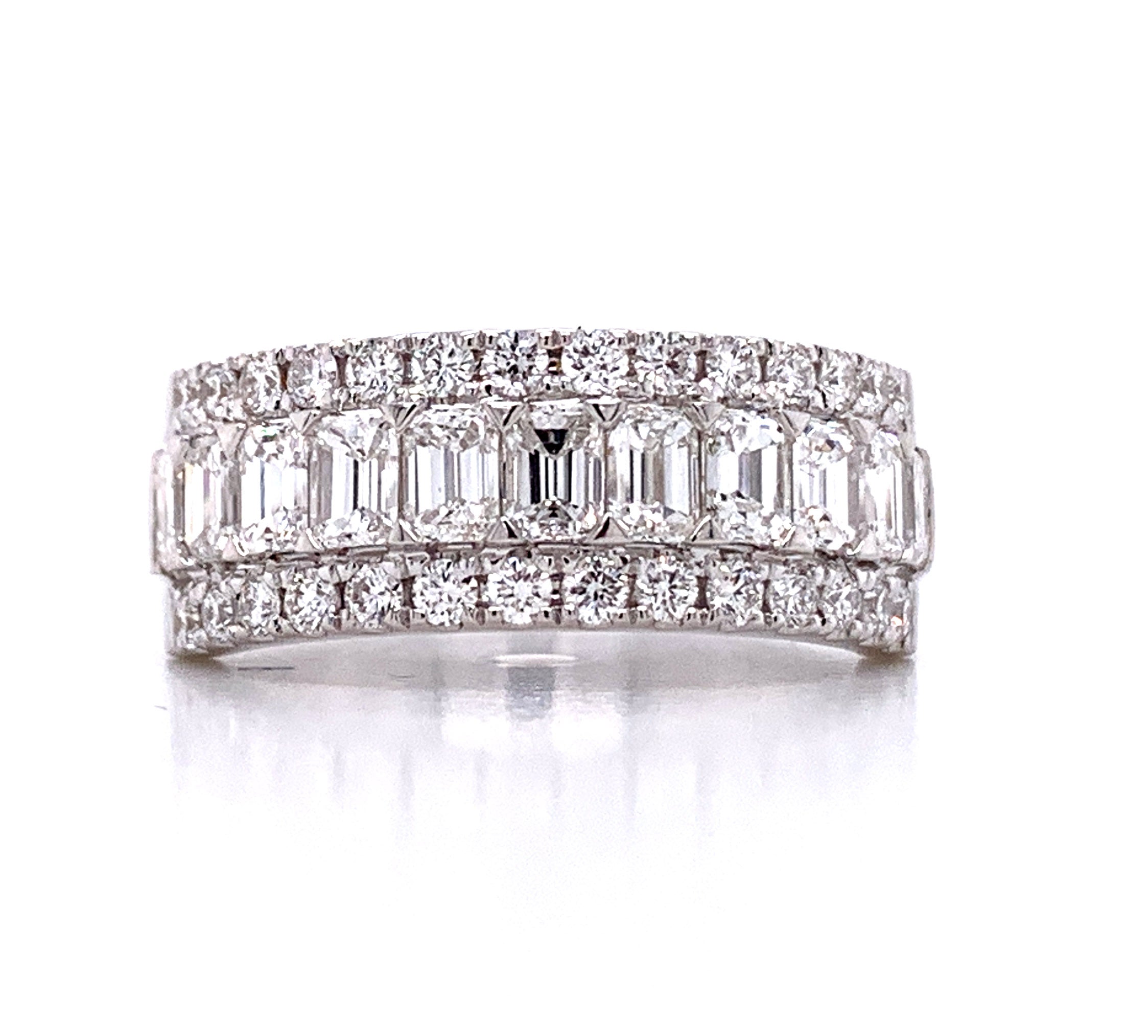 You'll definitely make a big statement with this emerald-cut diamond anniversary eternity band! This unique eternity band style is delicately crafted with 1.91carats of emerald and round diamonds that will encircle your finger with chic and elegance.
