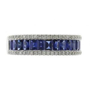 Indulge in the ultimate luxury with our diamond and baguette-cut blue sapphire band ring! Adorned with sparkling diamonds and vibrant blue sapphires, this ring exudes elegance and sophistication. Elevate any outfit with this must-have accessory that will make you stand out from the crowd.