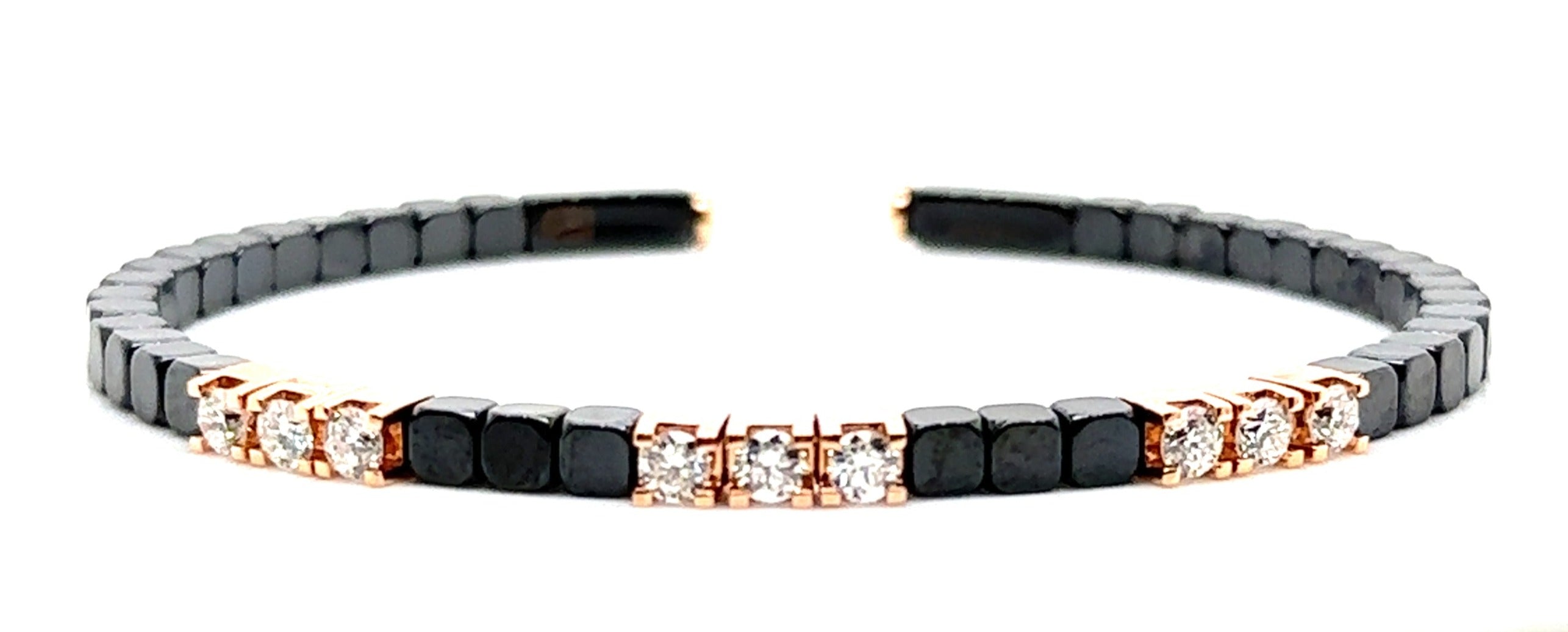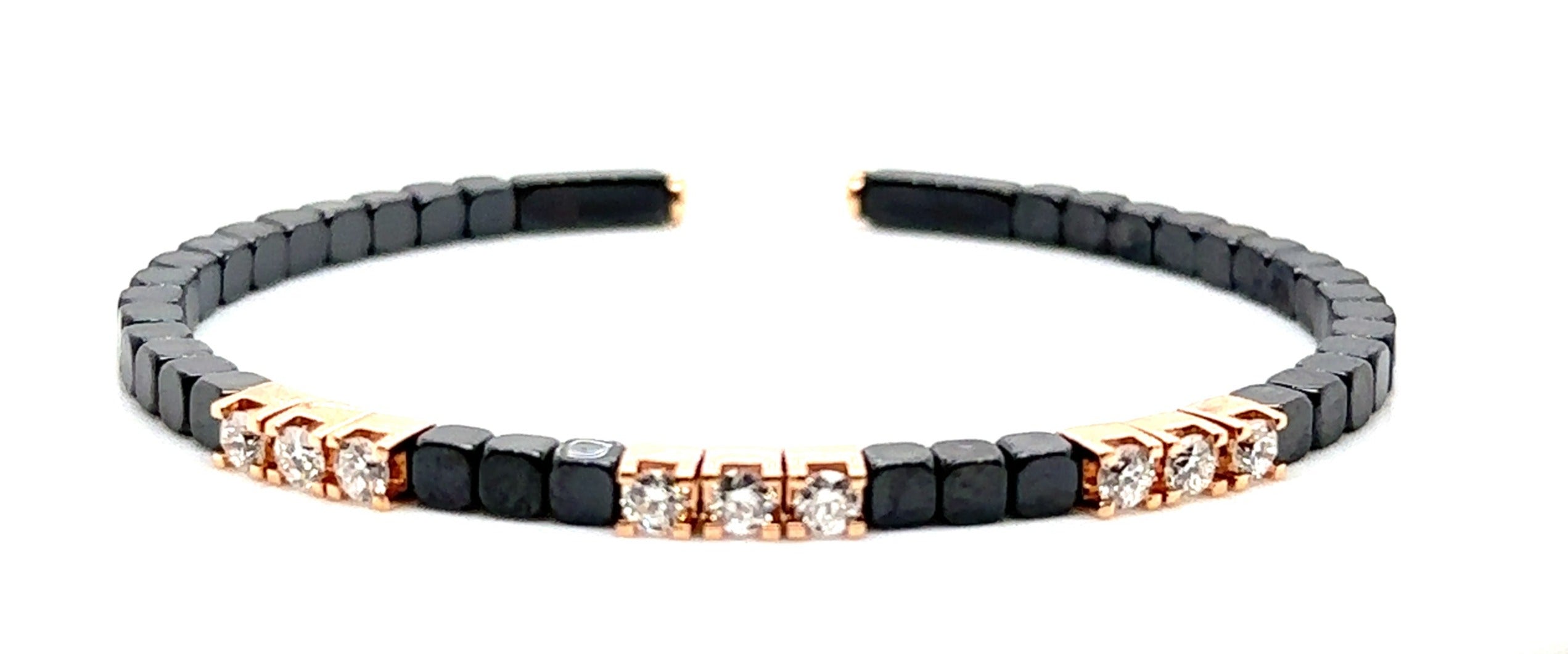 Indulge yourself in the stunning beauty of our diamond and ceramic beaded bangle bracelet. With a dazzling 0.85ct tw of sparkling diamonds and a sleek ceramic design, this bracelet is the perfect combination of elegance and modernity. Elevate any outfit with this luxurious and eye-catching accessory.