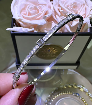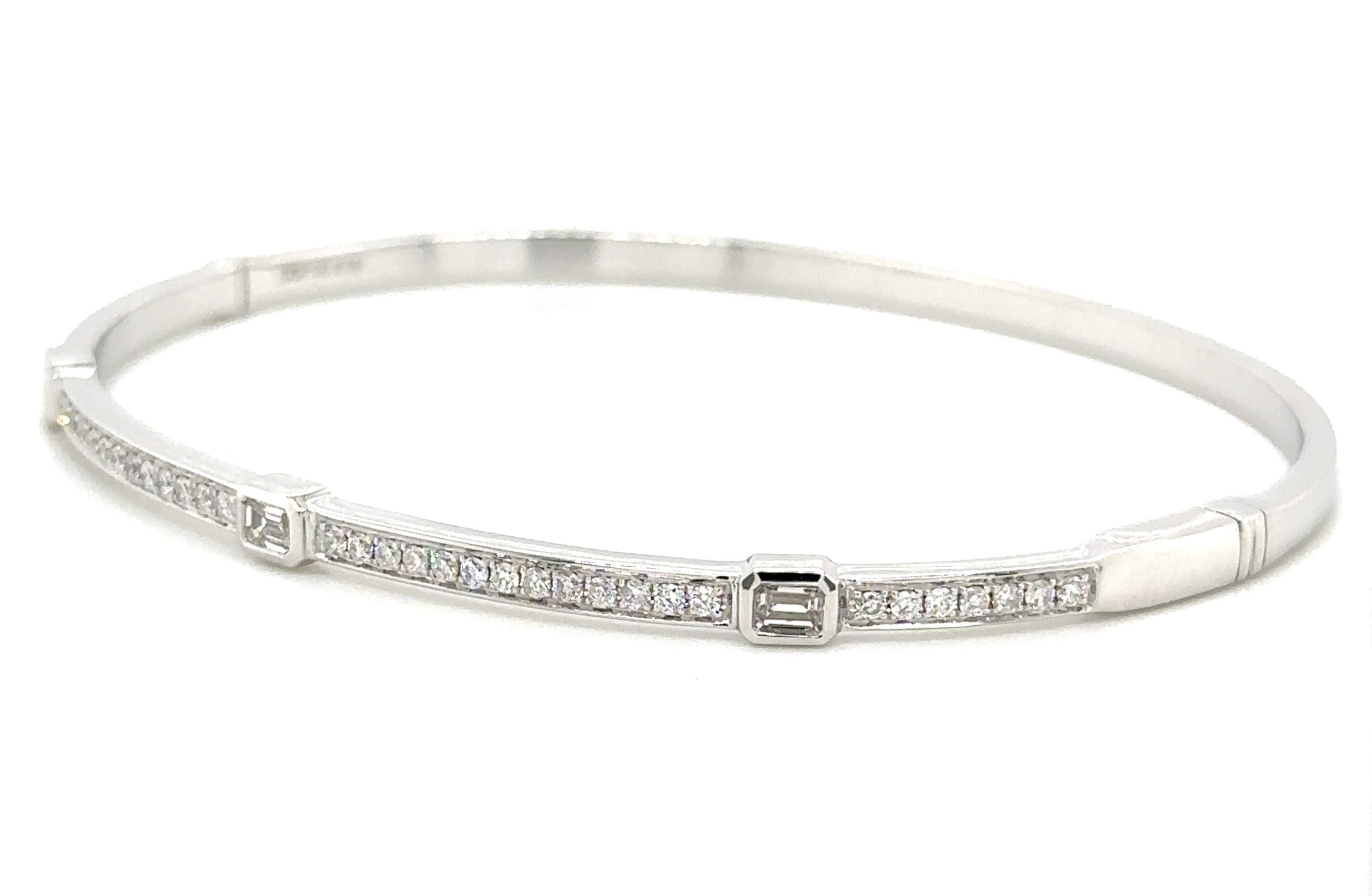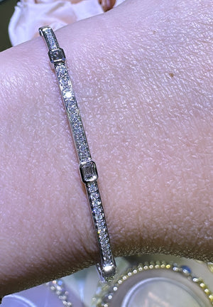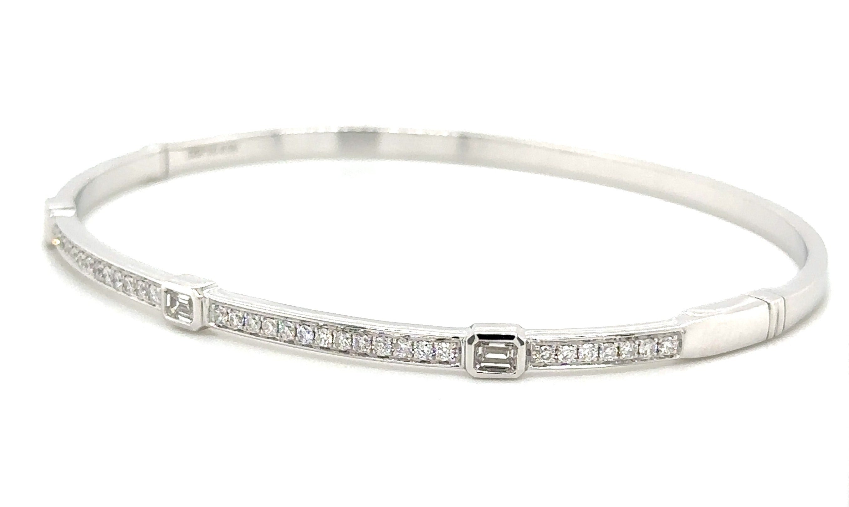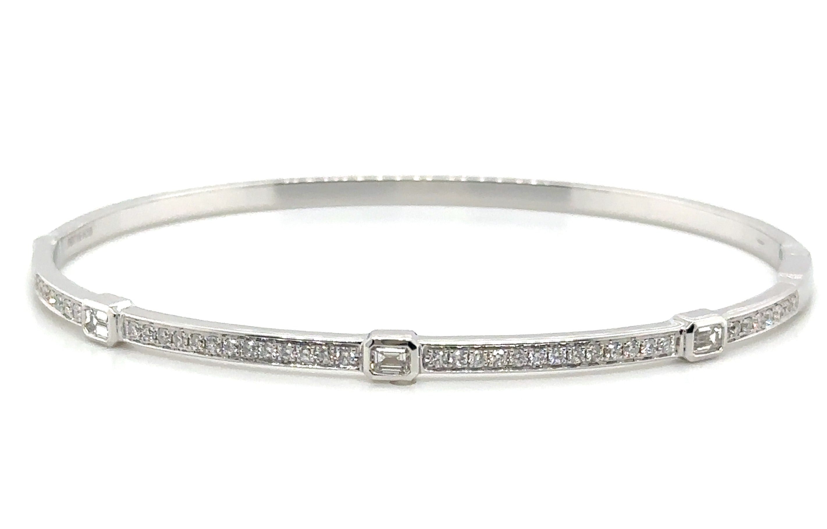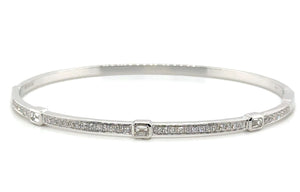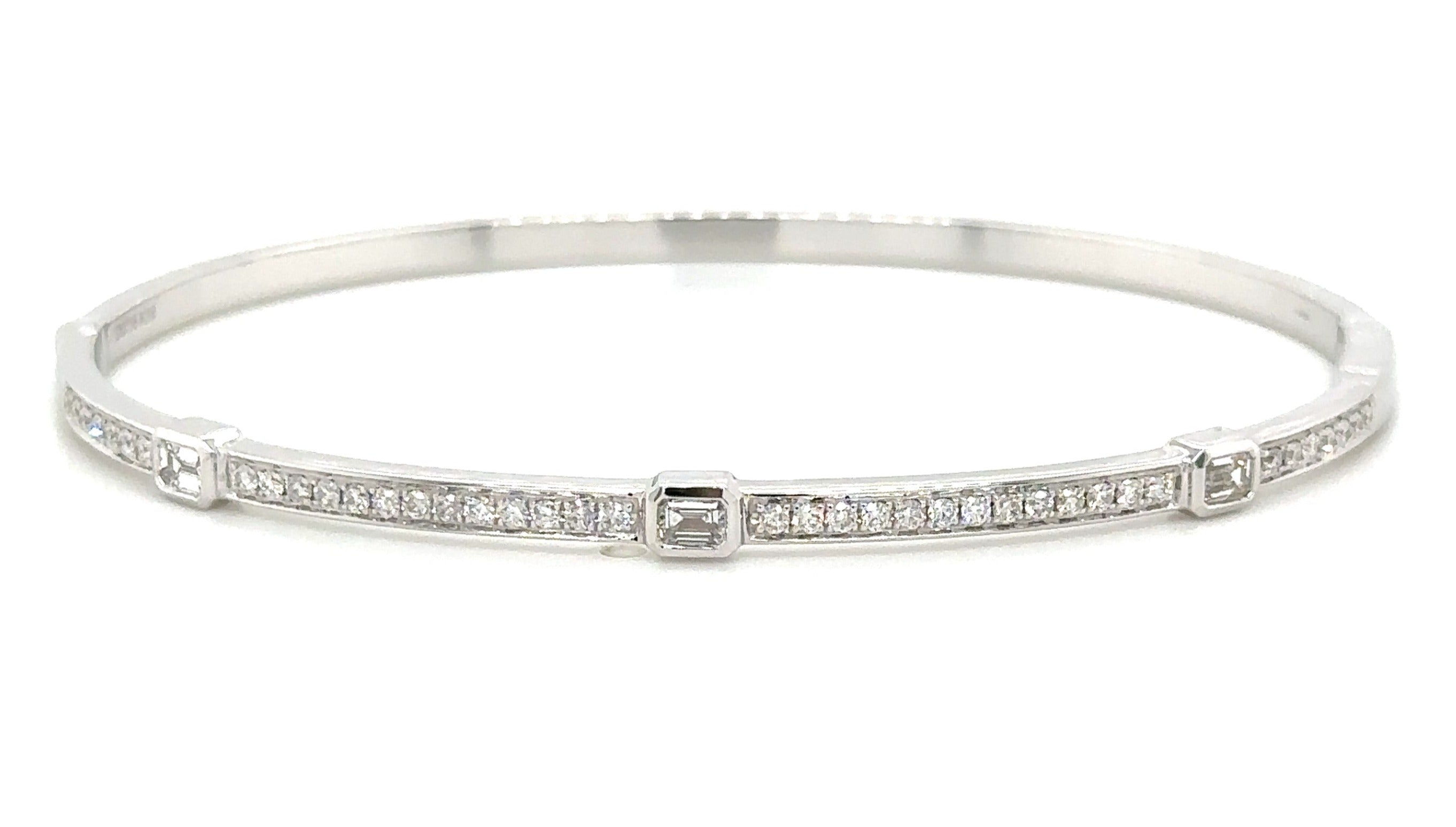 Sparkle and shine with our beautiful diamond bangle bracelet! Featuring 0.72ct tw of brilliant diamonds in a unique design with station 3 baguette cuts, this bracelet is sure to make a statement. Elevate any outfit and feel confident with this luxurious piece on your wrist.