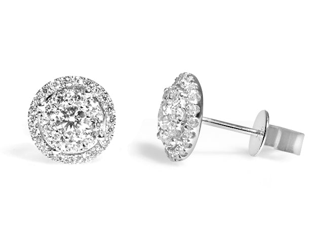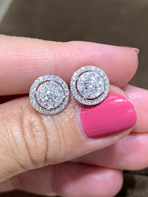 Designed to have the illusion of a larger stone, these exquisite diamond cluster stud earrings are a modern twist on the traditional diamond stud earrings.