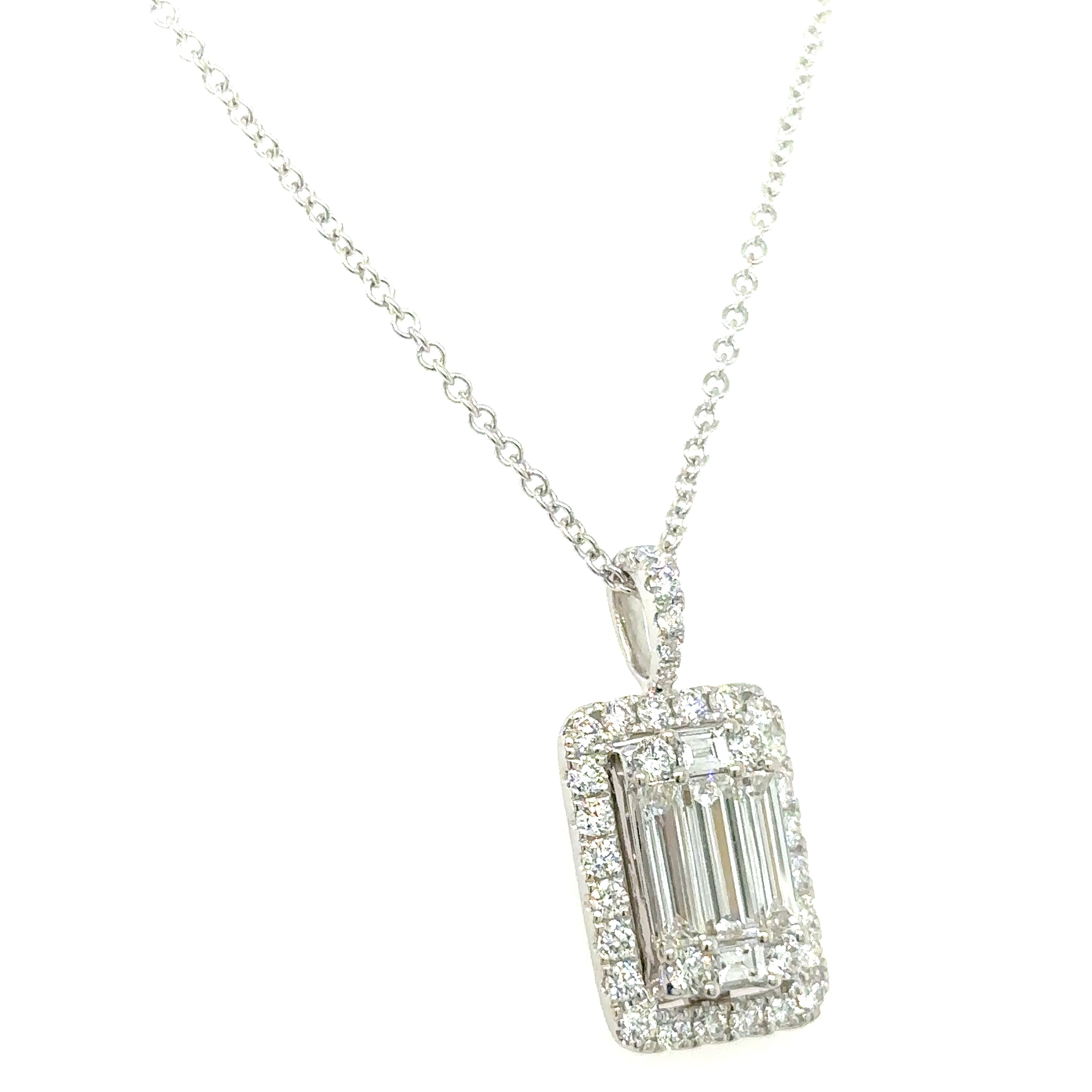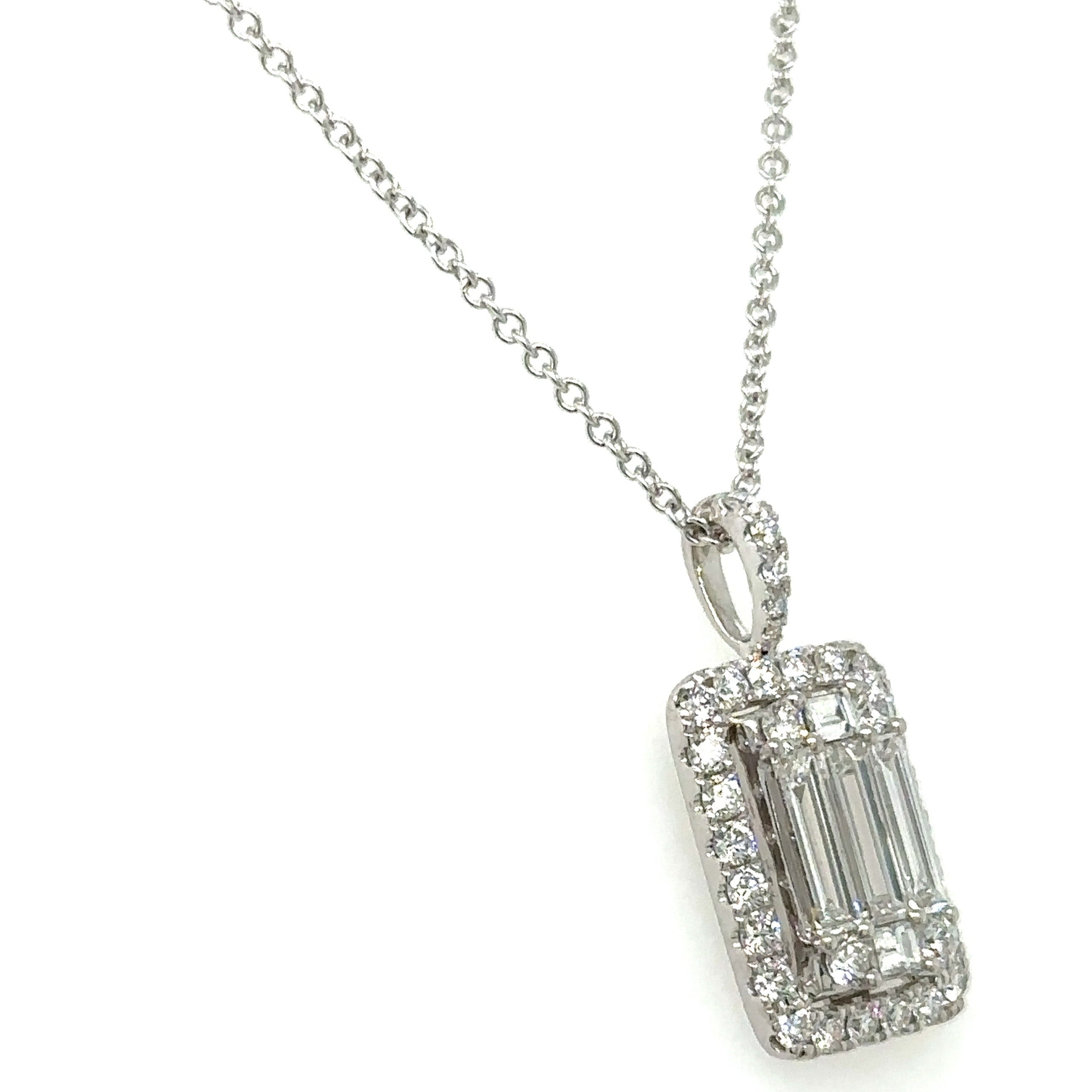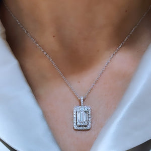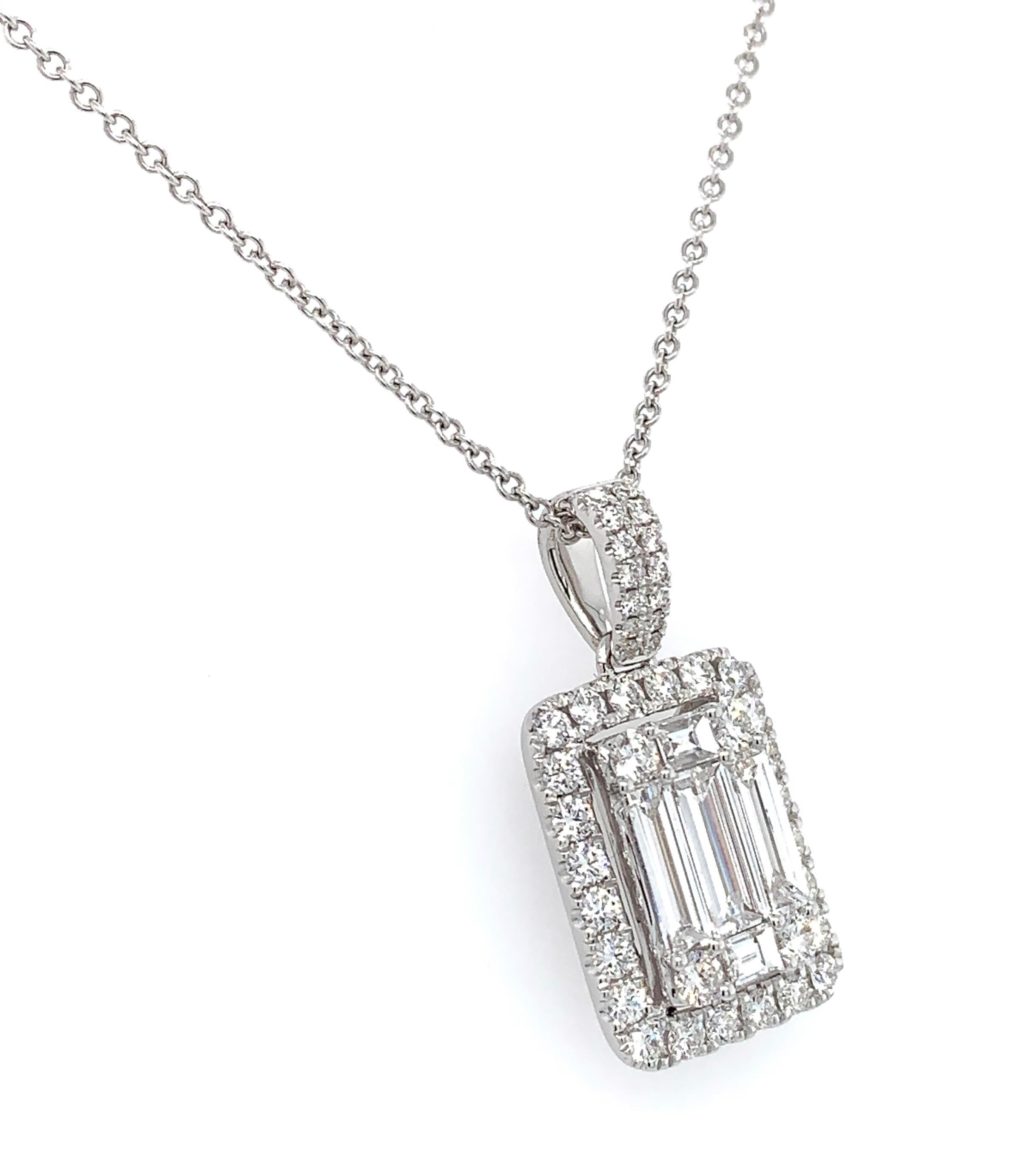 1.50ct tw Diamond Emerald Cut Invisible-set Pendant Necklace