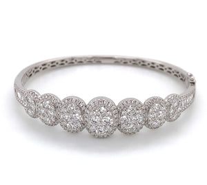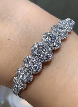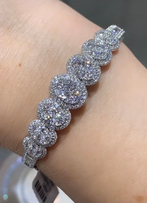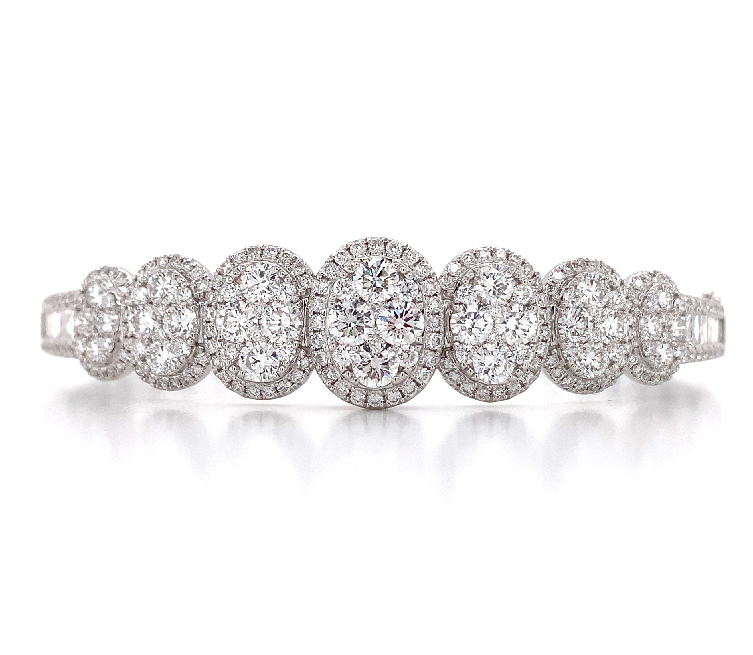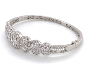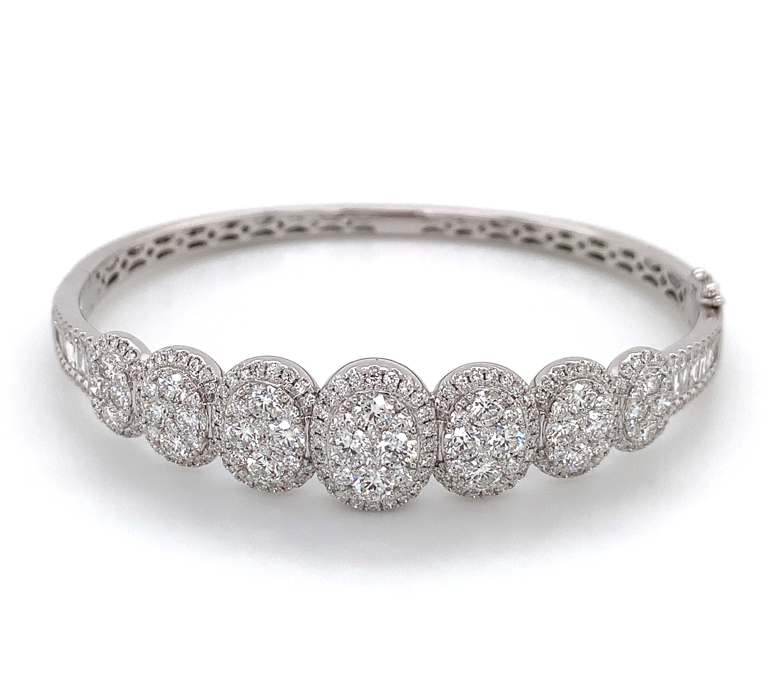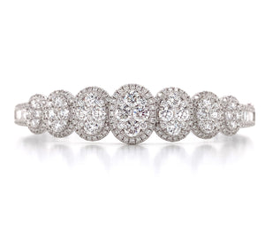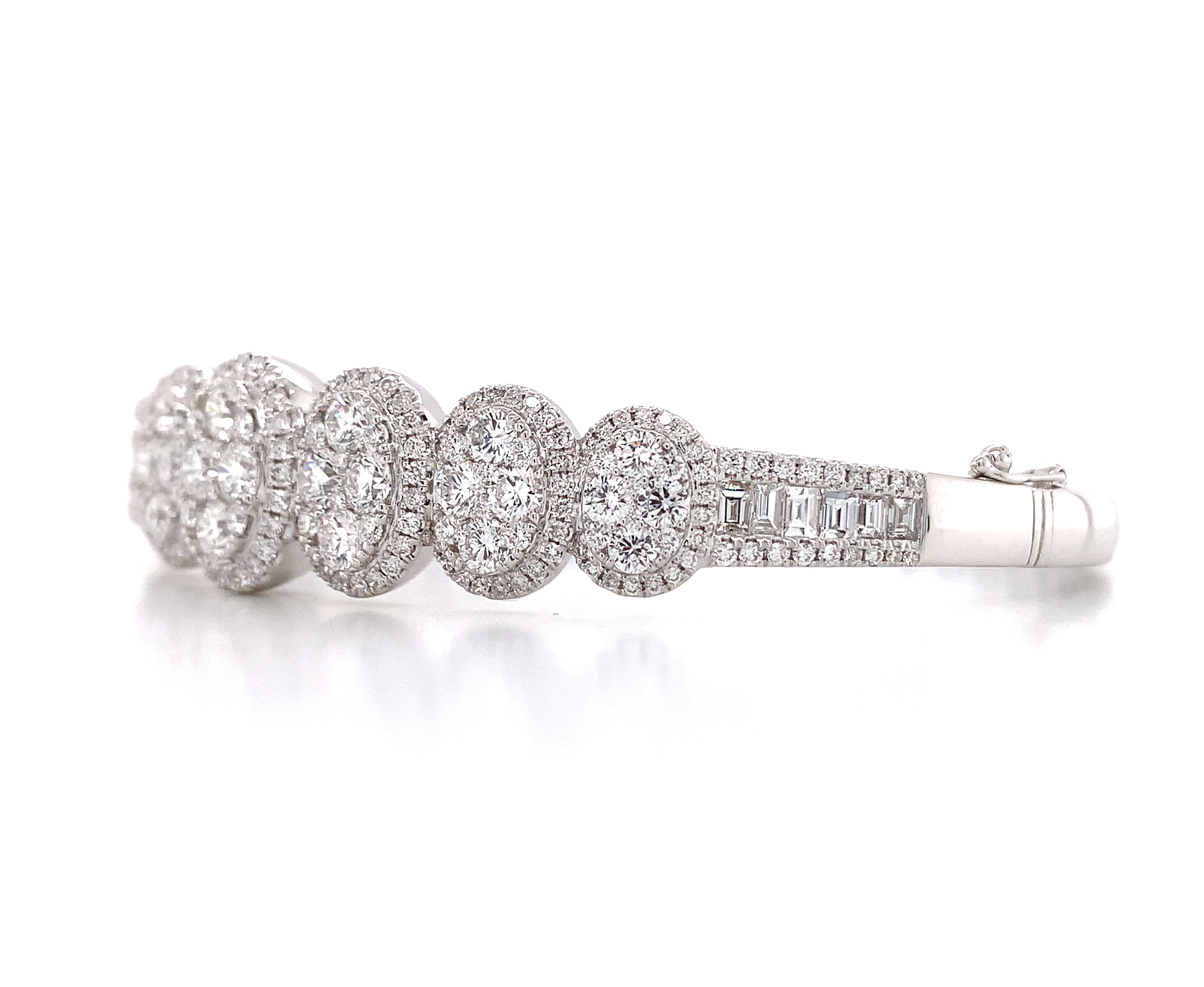 Great gift for an upcoming anniversary, wedding day, or just everyday wear. Delicately crafted in 18K White Gold will full cut round brilliant diamonds. Metal: 18K White Gold Diamonds: 246 Full Cut Round Diamonds 3.62ctw , 12 Baguette Cuts 0.52ctw Dimensions: W: 13mm