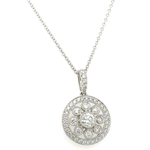Create an elegant and classic moment with this delightful Diamond Filigree Pendant 0.59ct tw Necklace. Crafted from the highest quality materials, this timeless piece sparkles with 0.59ct of diamonds, enhancing your special occasions with beauty and grace.