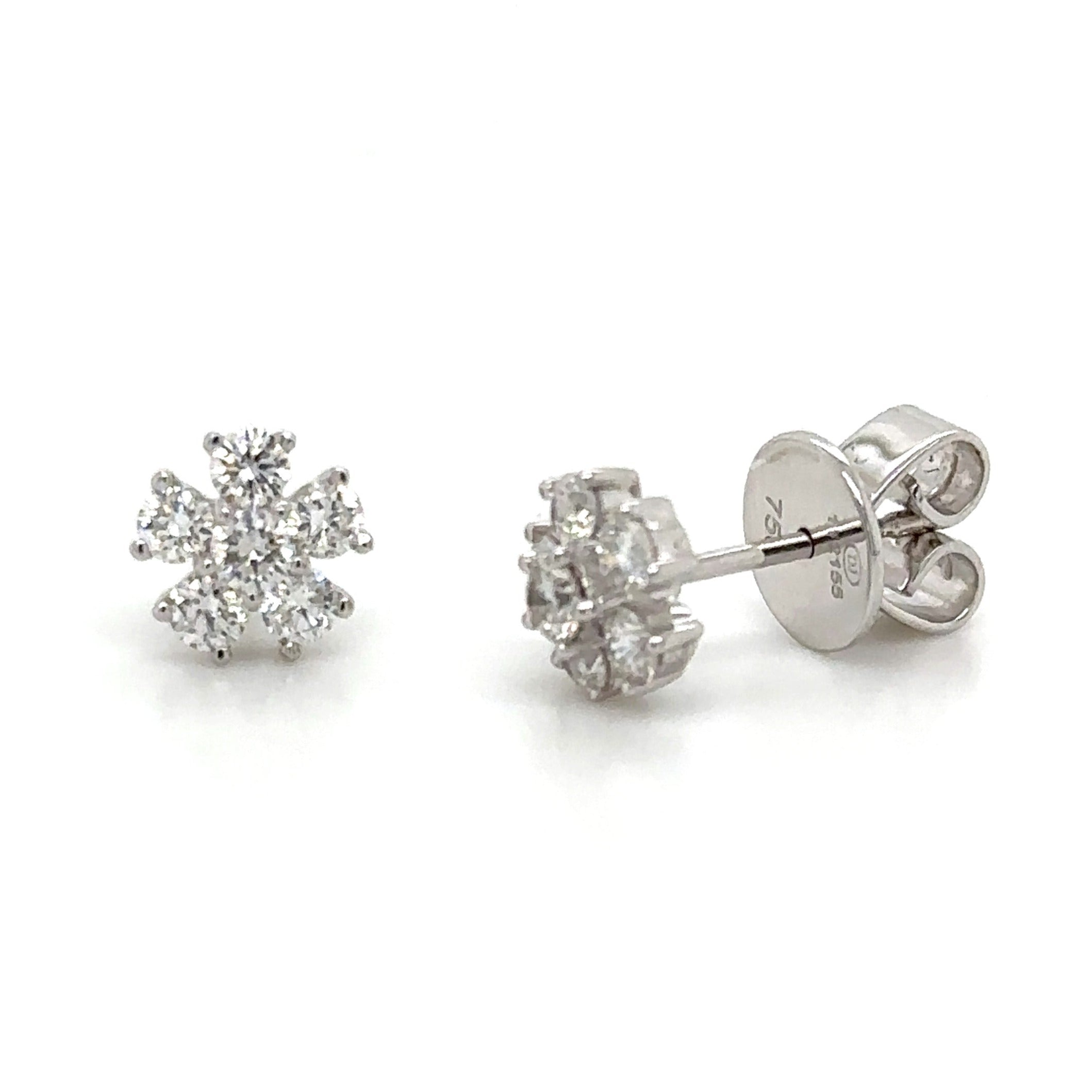 This design is so elegant and flirty she will never take these off her ears. Metal: 18K White Gold Diamond Weight: 0.57ct tw Diamond Shapes: 12 Round brilliant cuts Measurements: 8mm wide Backing: Push Back