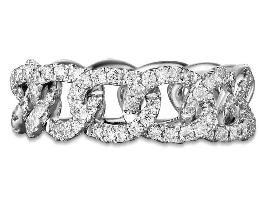 Diamond Fancy Flexible Link Ring Design 84 Diamonds 0.65ct total pave prong set, white gold unique design.