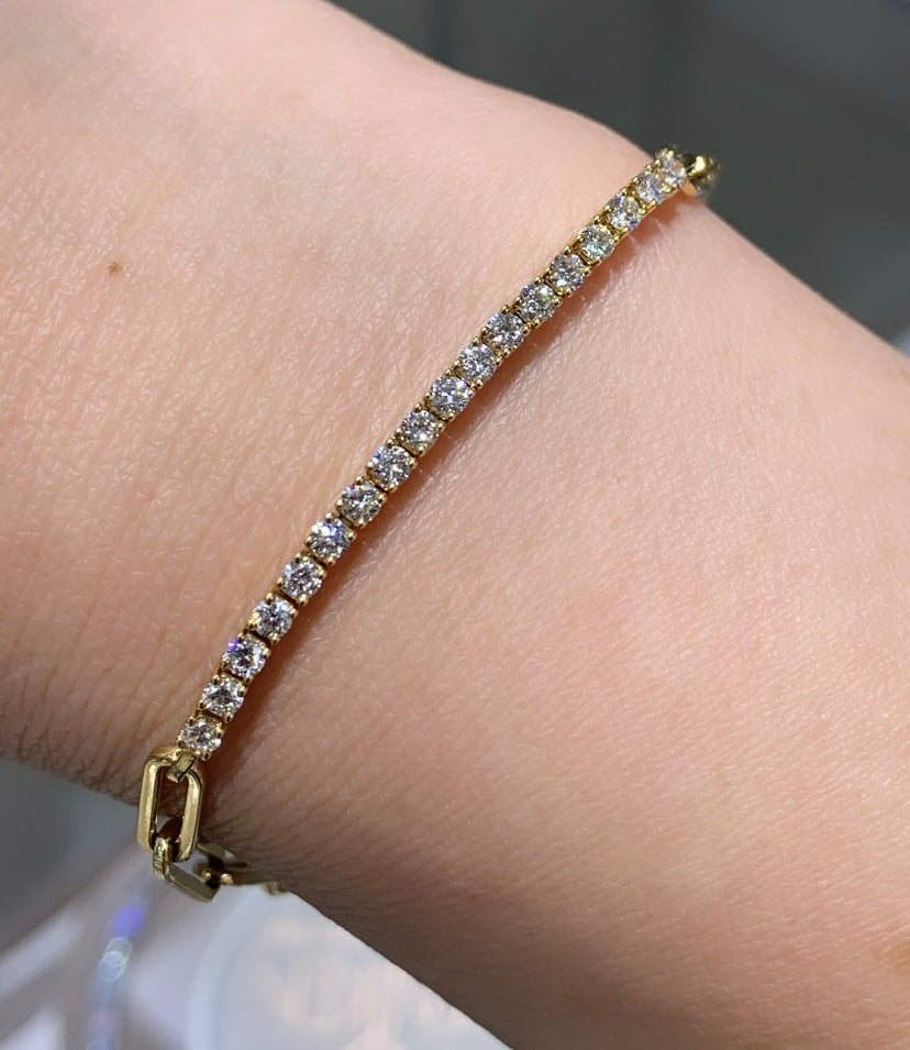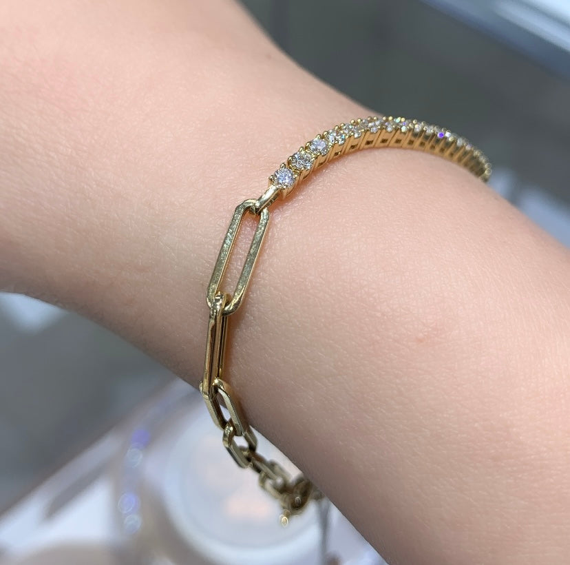 Elevate your elegance with this 0.80ct tw diamond and gold link tennis line bracelet. combining classic tennis bracelet sparkle with a modern gold link design, it offers versatile sophistication for any occasion.