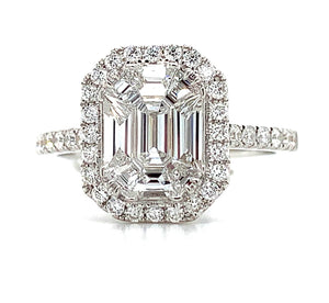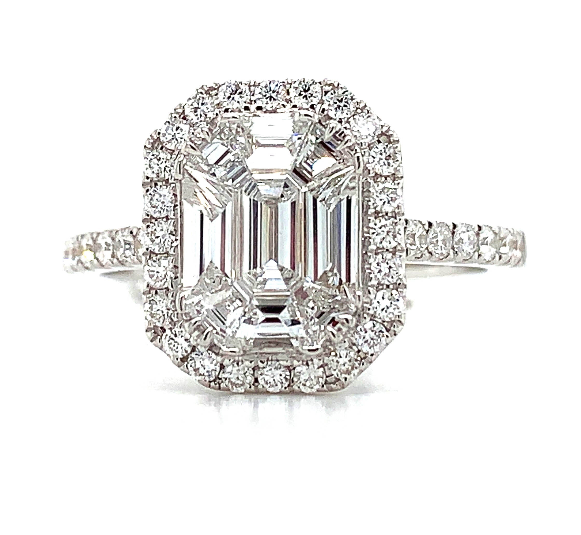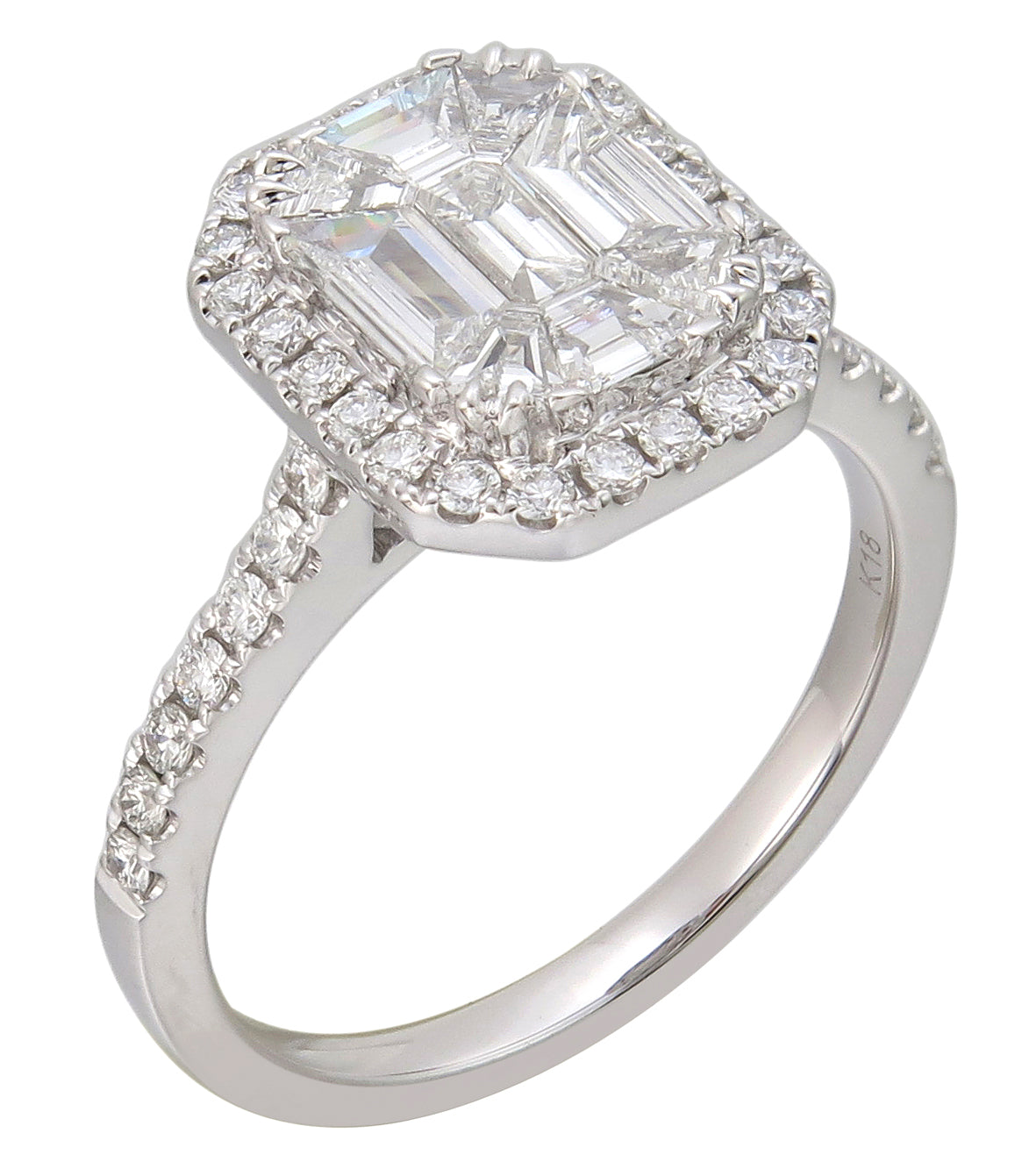 Diamond Weight: Emerald-cut 0.73ct, 38 Round Brilliant 0.39ct tw