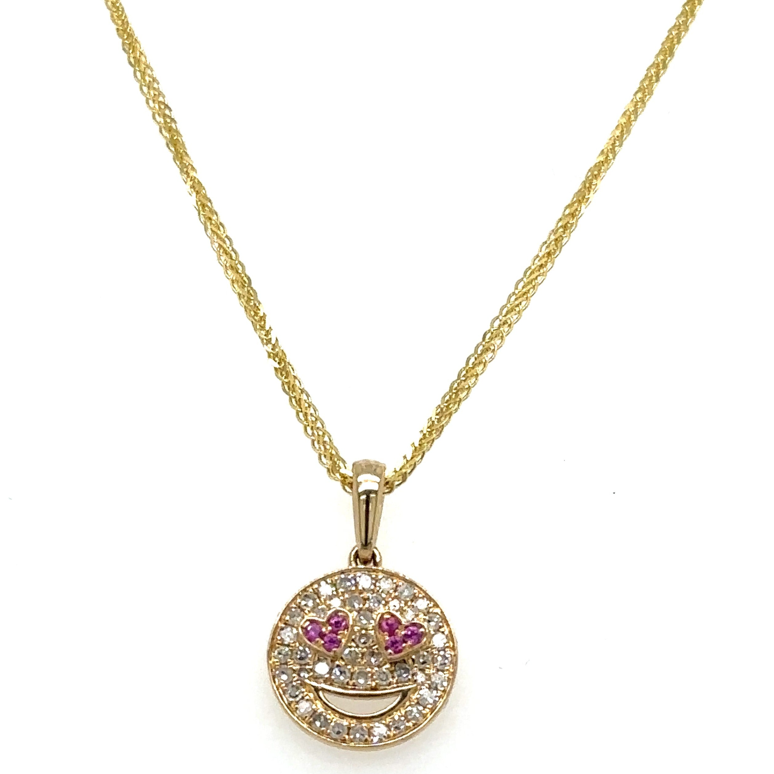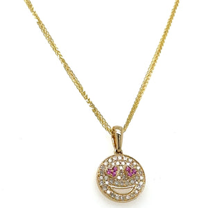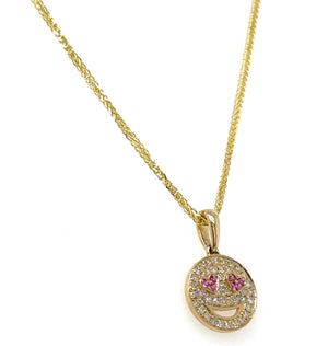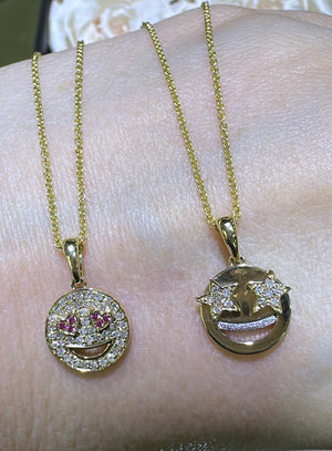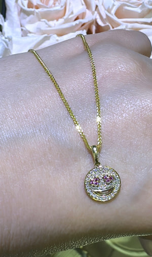 Shine bright and spread joy with our diamond pave smiley pendant necklace. Made with the highest quality diamonds, this necklace will add a touch of elegance to any outfit. Show off your unique style and uplift your mood with a dazzling smiley pendant around your neck.