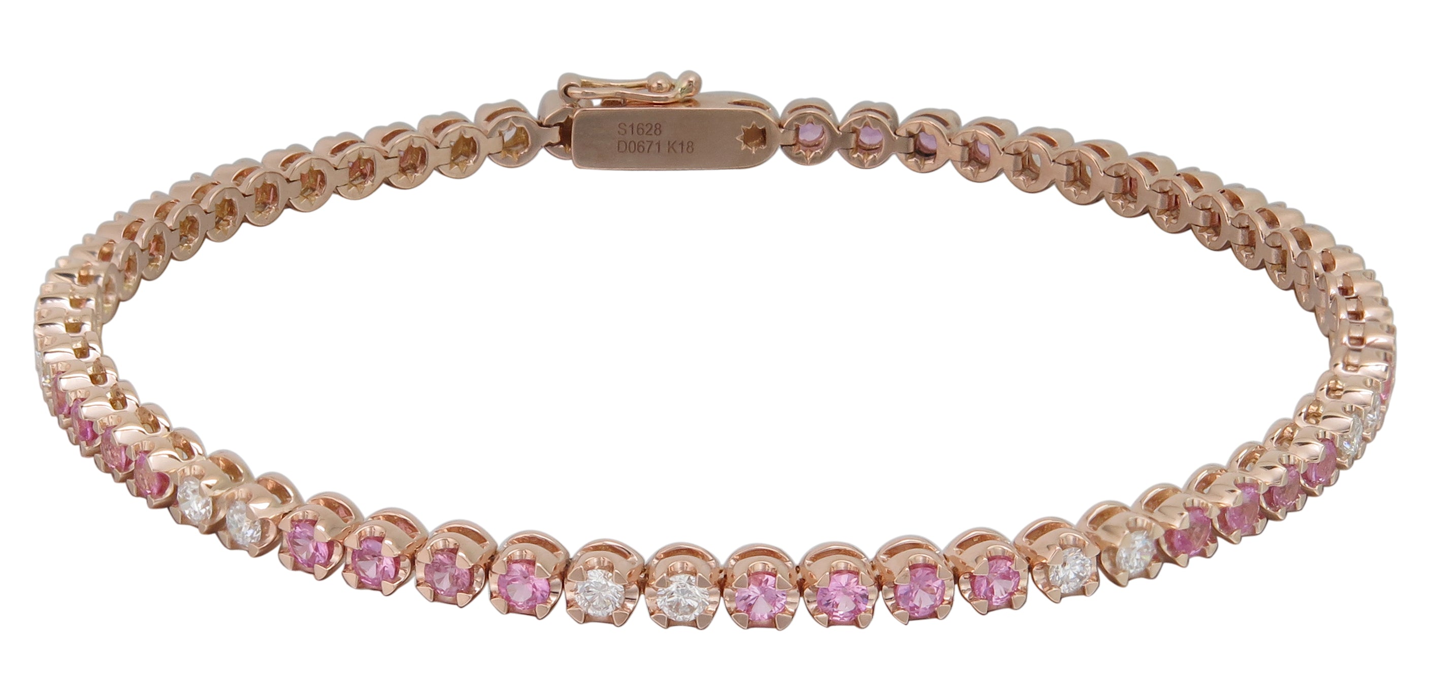 An eye-catching piece of classic workmanship, our white gold pink sapphire and diamond tennis bracelet is a must have. Romantic pink sapphires and high-quality diamonds combine to a deafening roar of 2.20ct tw of shine.