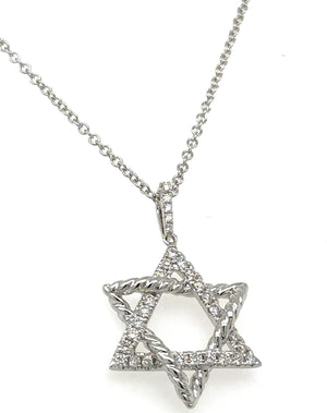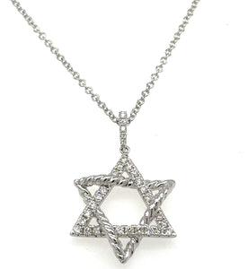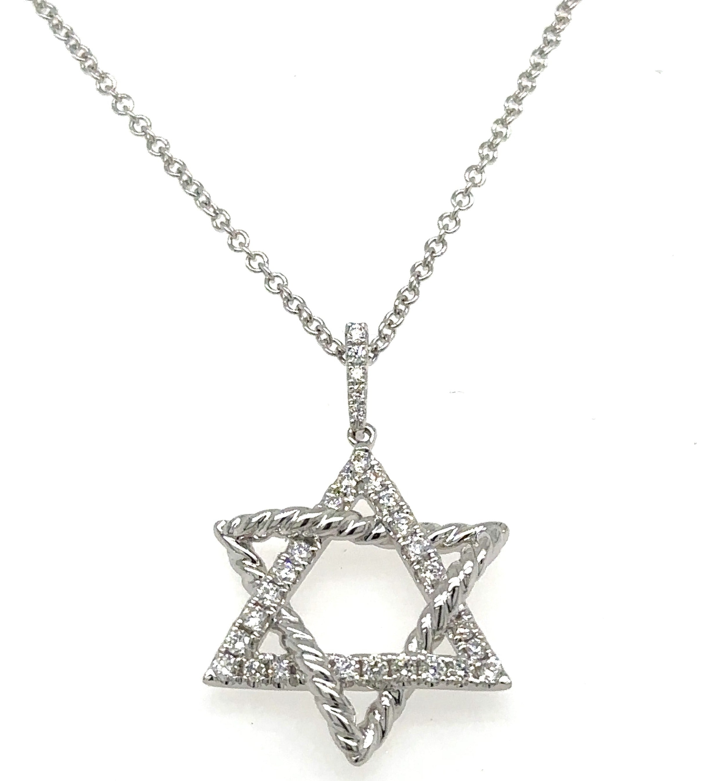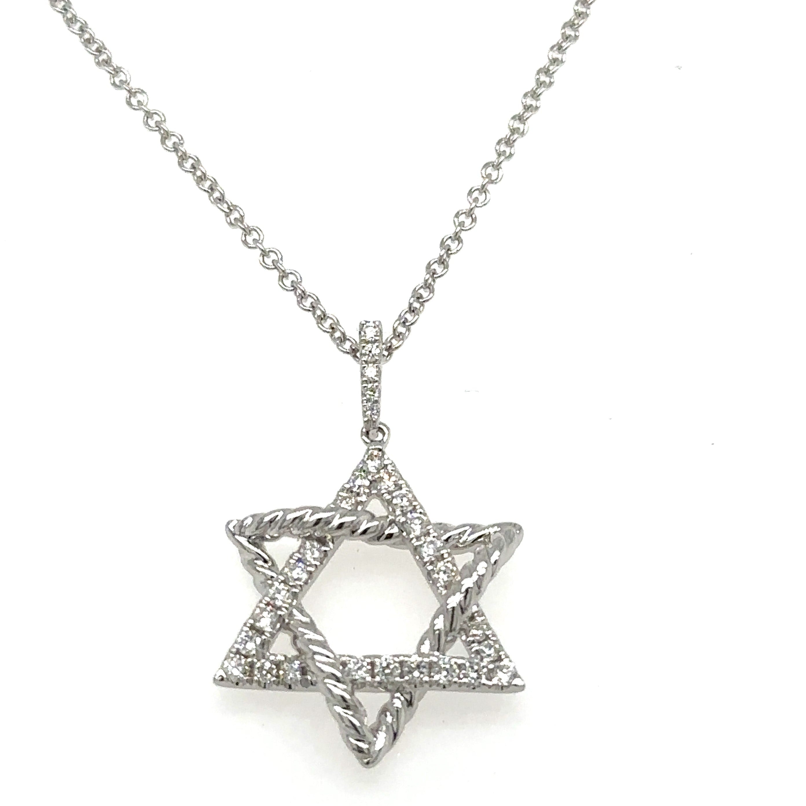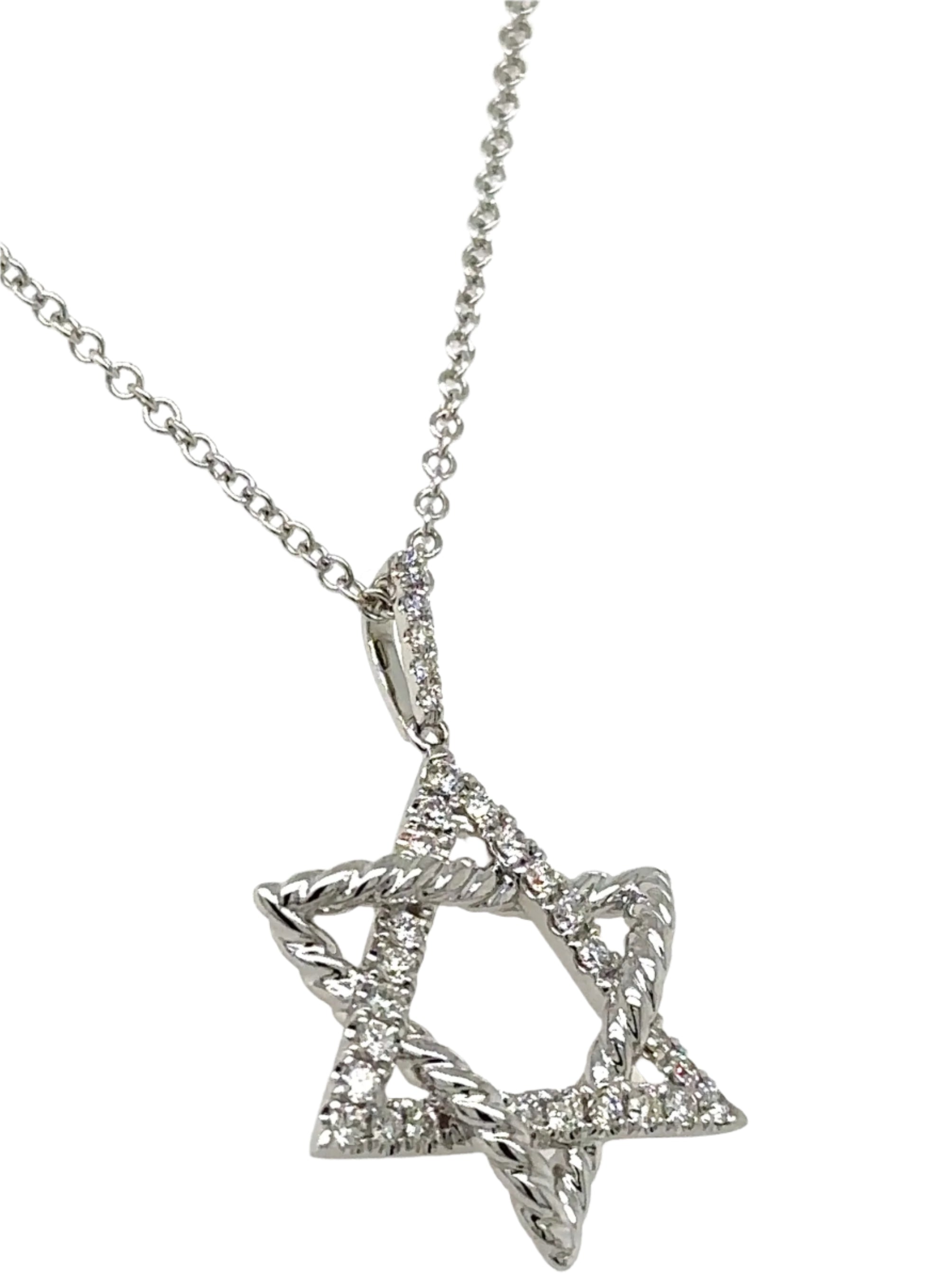 This exquisite diamond-studded necklace displays the timeless and iconic star of david symbol. Adorned with dazzling diamonds, it is a perfect representation of faith and heritage. Whether for yourself or as a gift, this pendant necklace is a beautiful and meaningful piece that will be treasured for years to come.