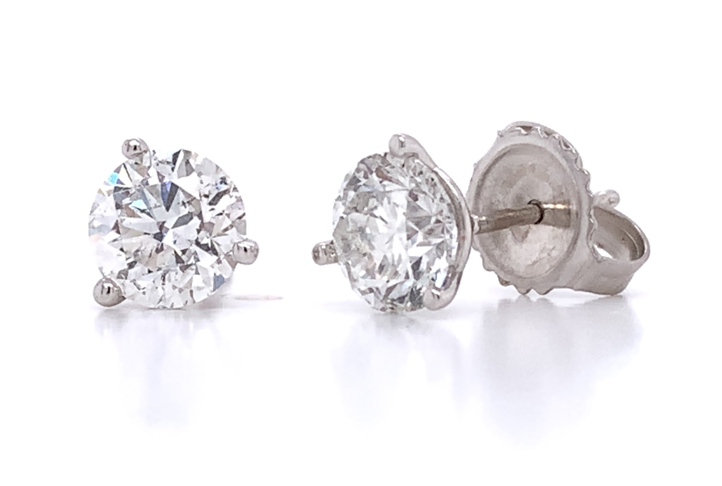 Perfect match, our 1.62-carat gold stud earrings are timeless and sure to please for everyday wear. These beautiful stud earrings show off 1.62ct t.w. of high-quality round brilliant diamonds which makes these studs a no-brainier. Metal: 18kt White Gold Diamond Shape: Round Brilliant Diamond Weight: 1.62ctw Setting Type: Three Prong Backings: Push Backs