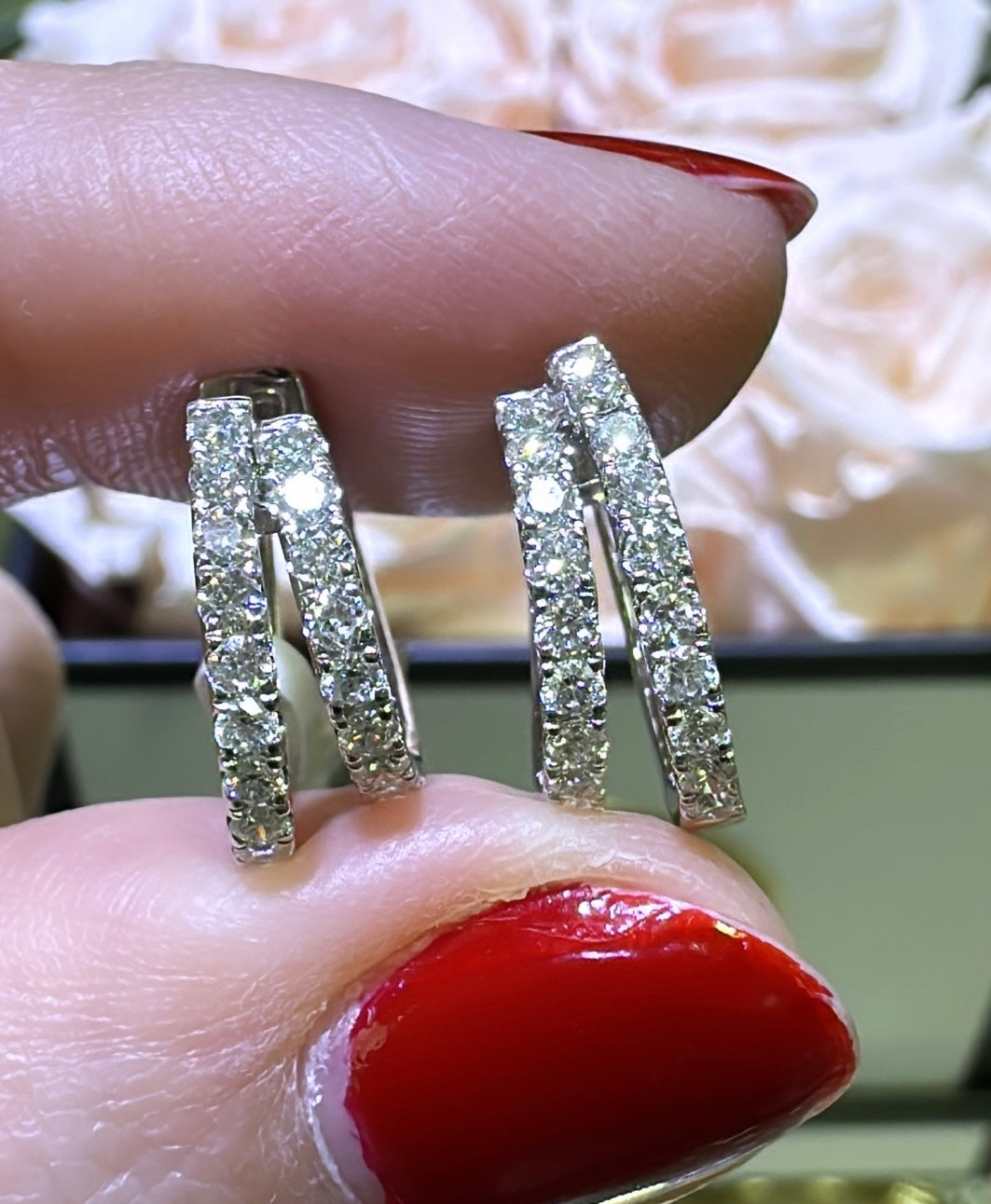 Sparkle and shine with our double diamond huggie earrings! These stunning earrings feature double rows of diamonds totaling 0.64ct tw, adding a touch of elegance to any outfit. Feel confident and radiant with these beautiful earrings that will surely catch everyone's attention.
