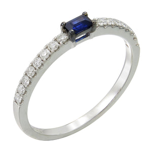 Stackable fun and flirty! You can pretend it's a right hand ring or wear it as a wedding band - you decide one thing we know you will love the shine and dazzle of white diamonds and blue sapphire.