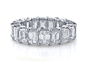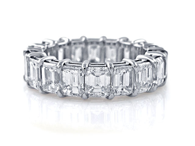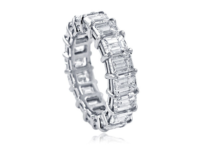 Spectacular Emerald Cut diamond eternity ring made in rich luxurious Platinum brilliant from all angles. Will take your breath away the moment you put it on. Perfectly matched circle of super clean Emerald Cut diamonds, an ideal wedding or anniversary ring.