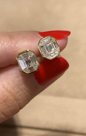 Beautiful diamond earrings made in an octagonal shape that is oh so sophisticated and classy. Slip them on everyday and transform them into a night look.