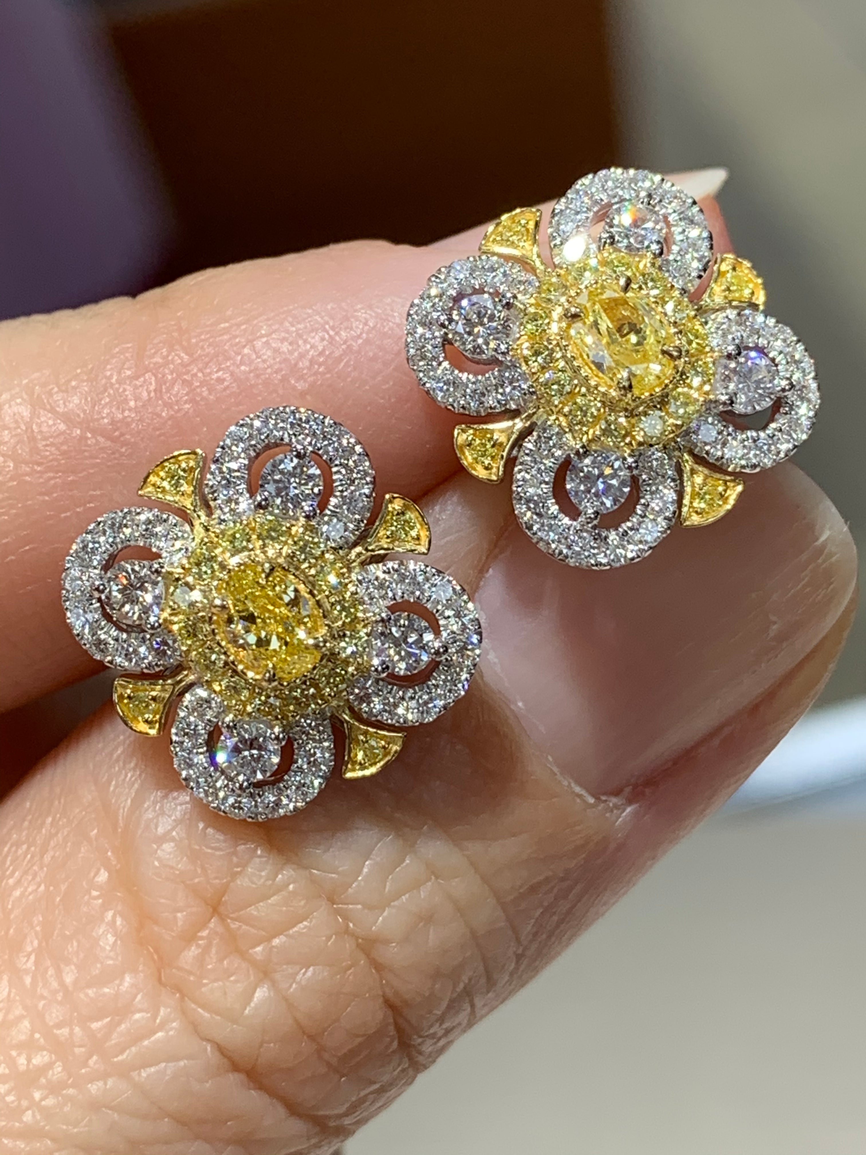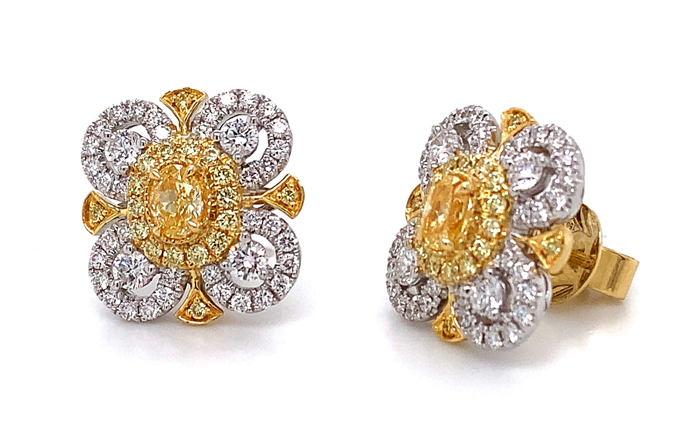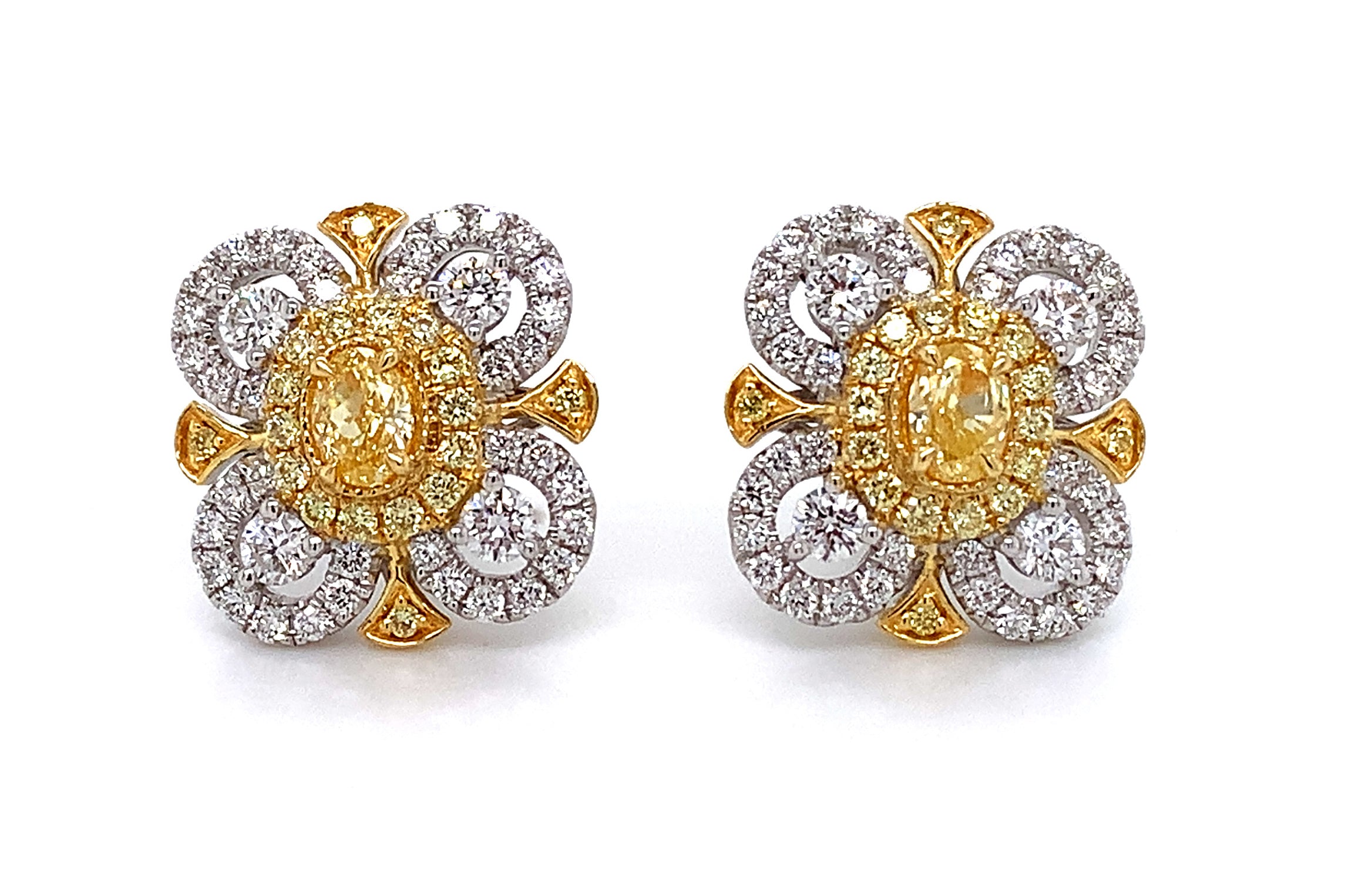 Fancy Yellow Diamond Clover Flower Style Earrings - HANIKEN JEWELERS NEW-YORK