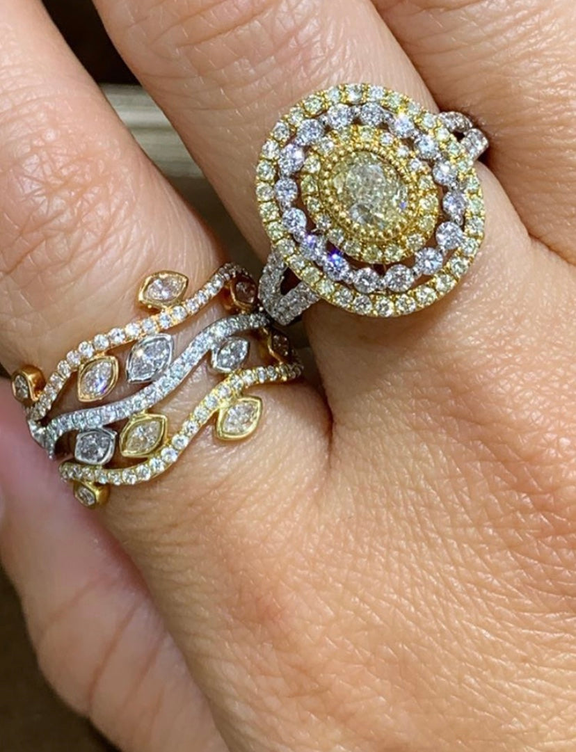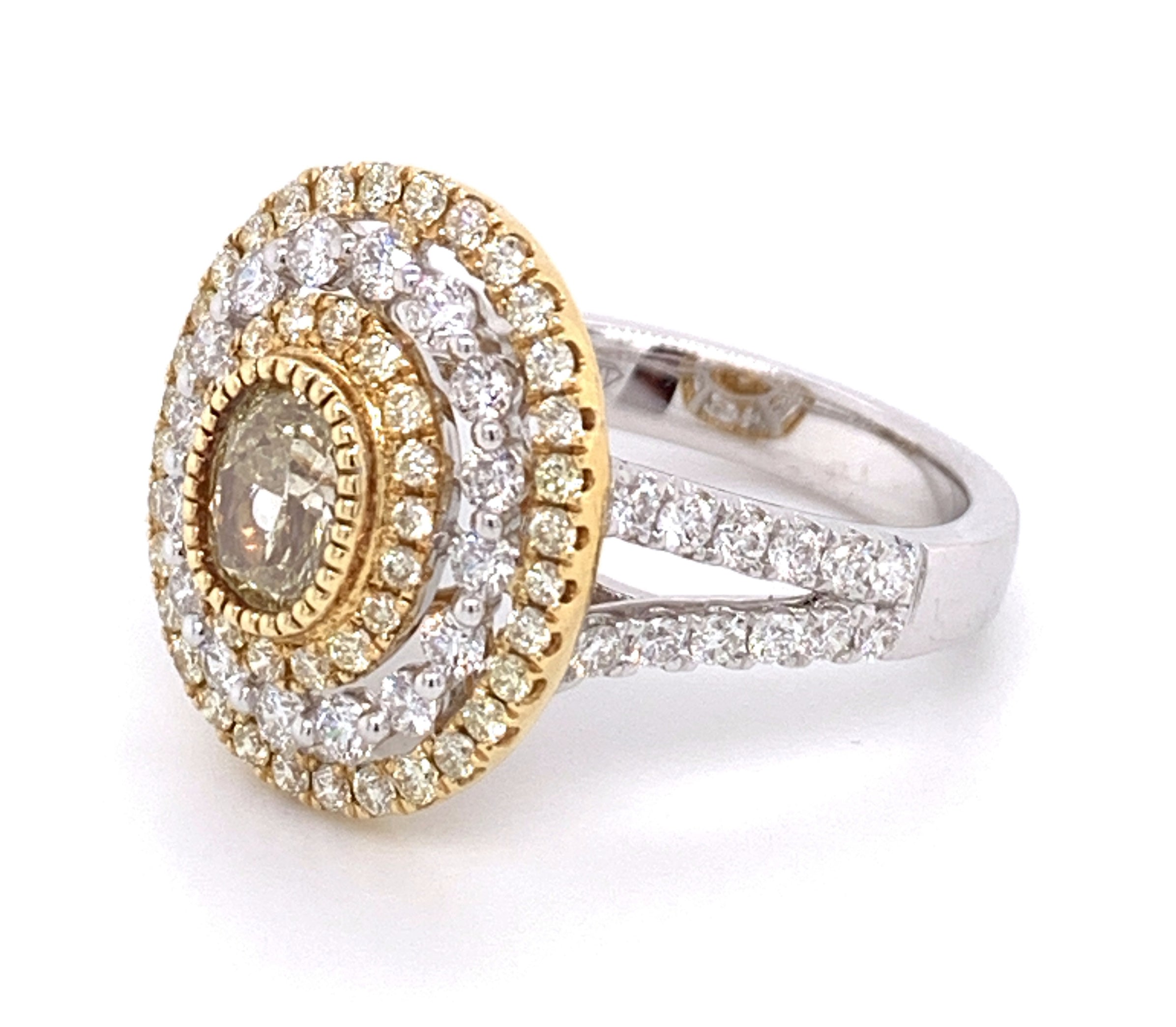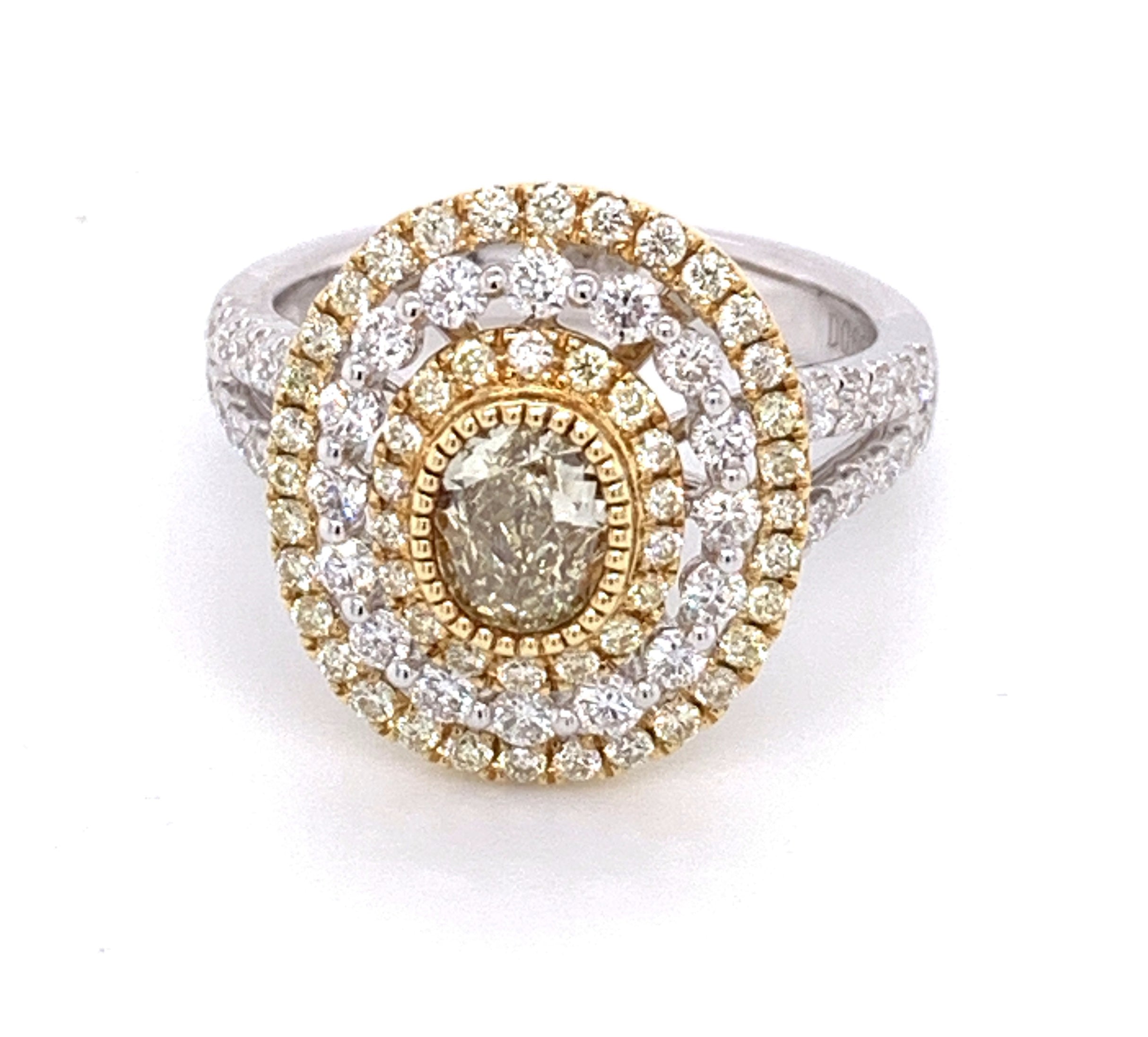 Center Gemstone: 1 Fancy Yellow Diamond Oval cut 0.66ctw