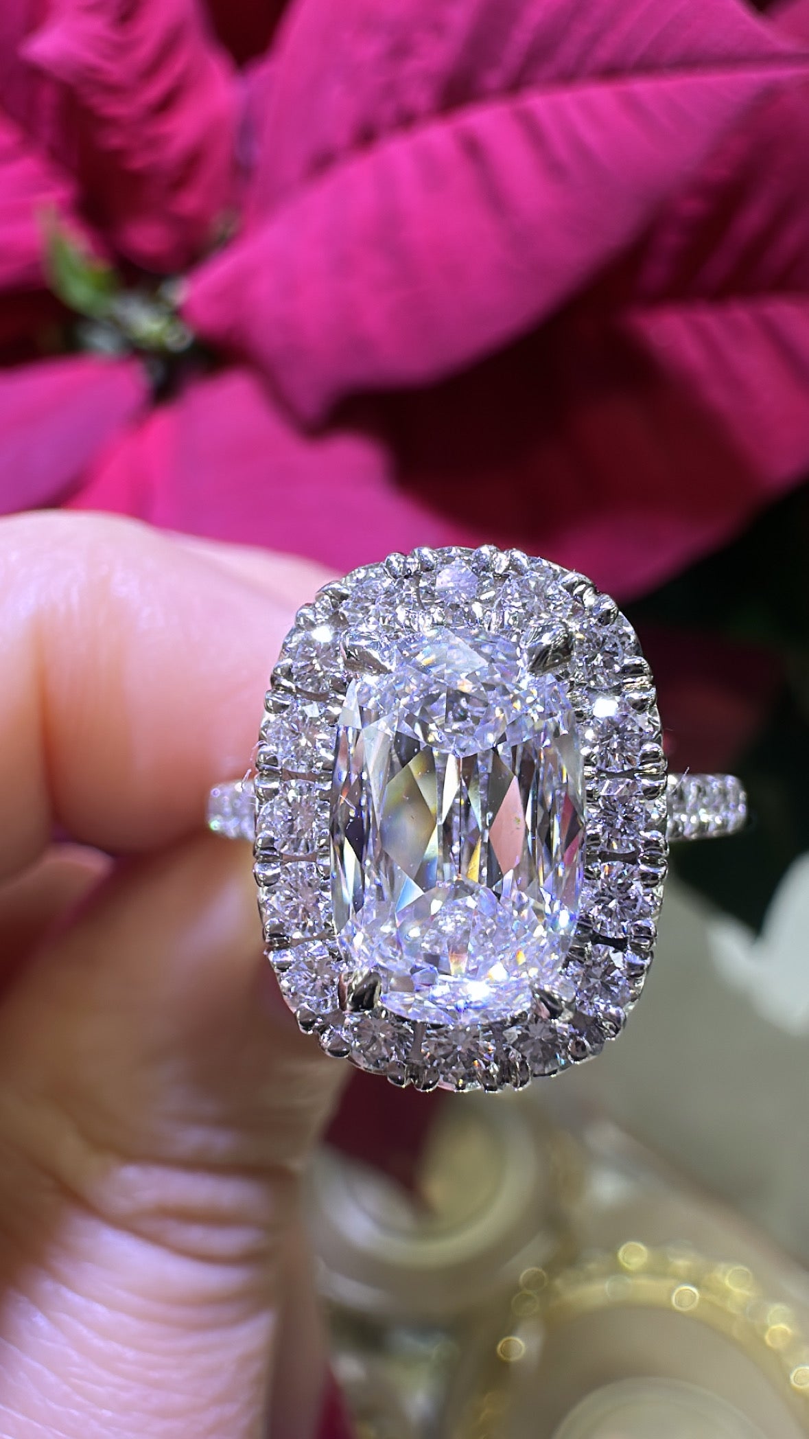 GIA Certified 3.34carat Henri Daussi Cushion-cut Engagement Anniversary Ring