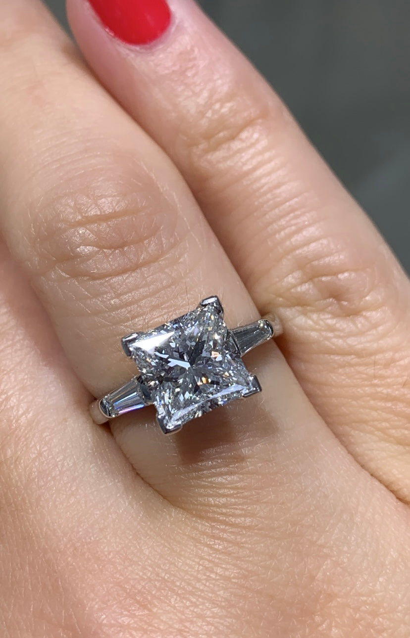 Center Diamond: 2.52ct tw Fancy Princess Cut D clarity SI1 (GIA)