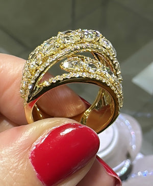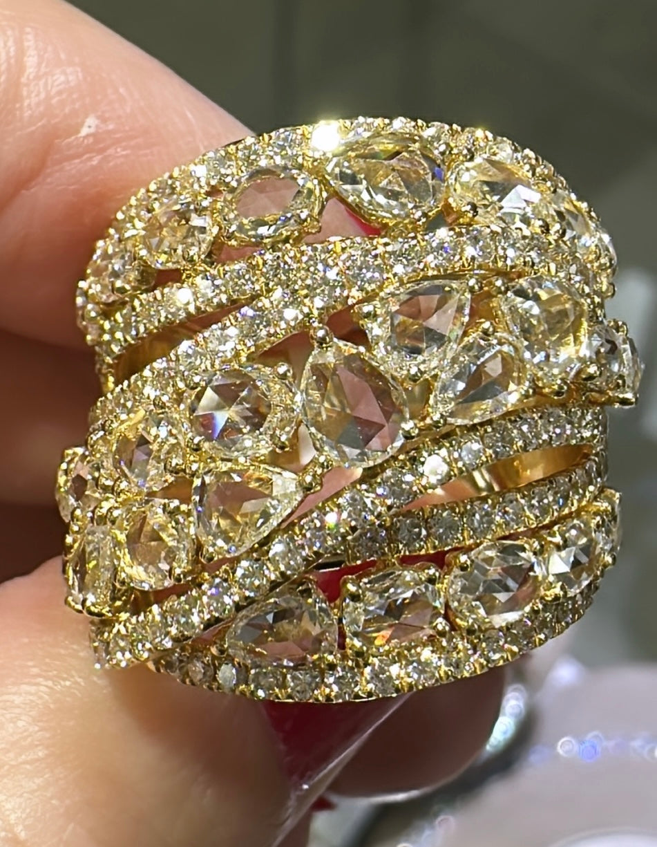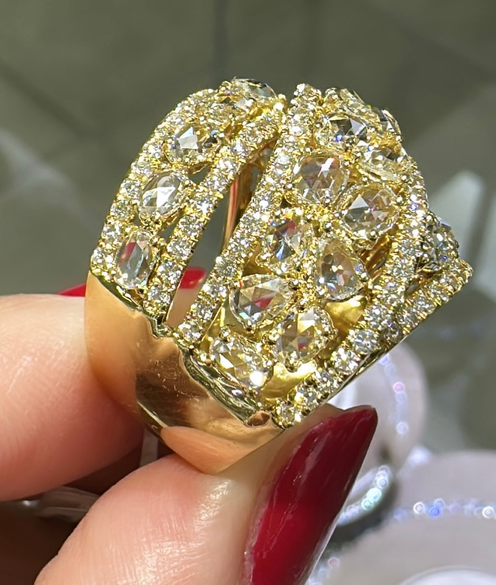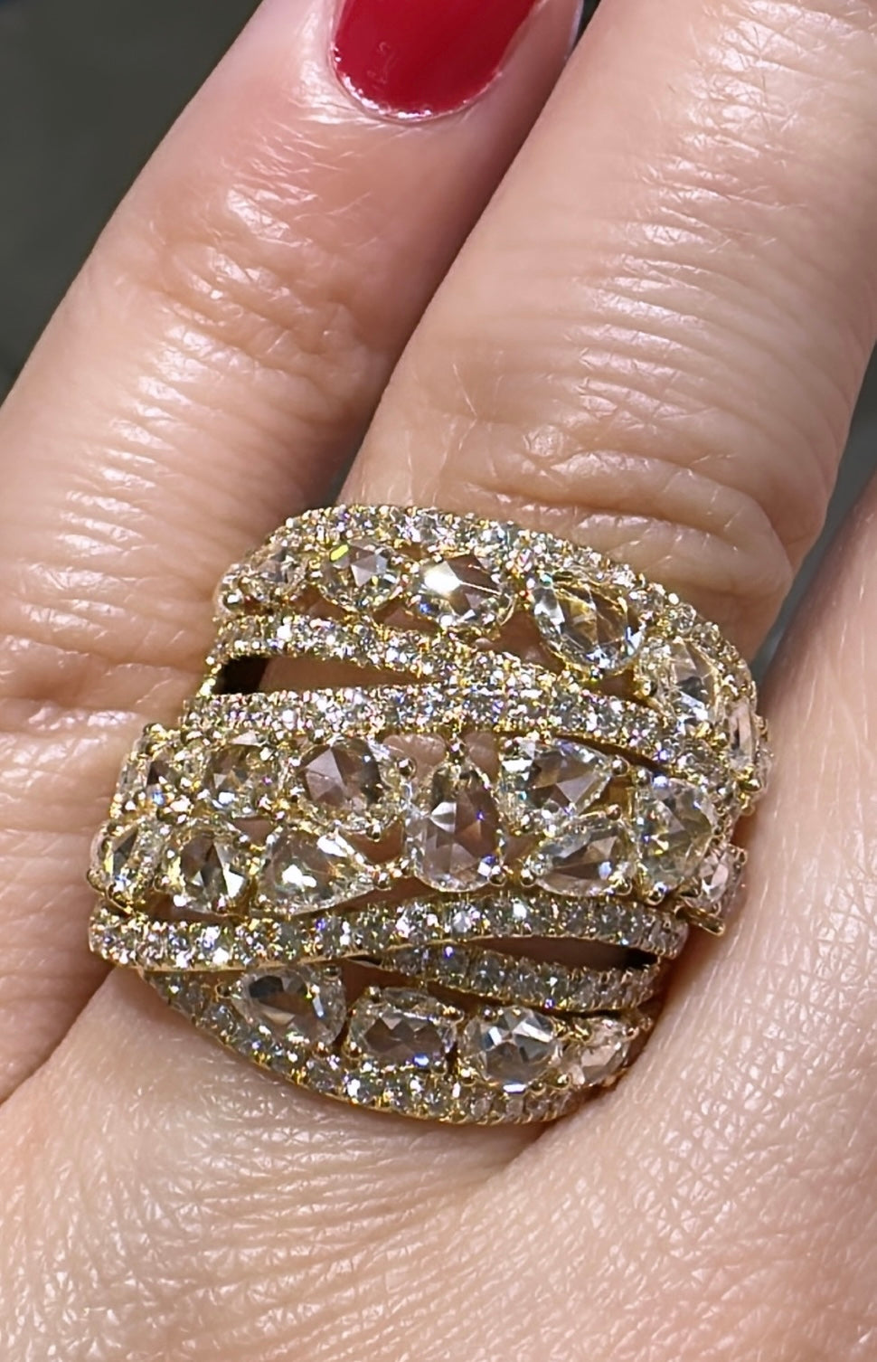 This fancy cocktail, right hand ring with the total carat weight of 4.24ct tw in rose-cut mix fancy cut diamonds is sure to become one of your favorite!
